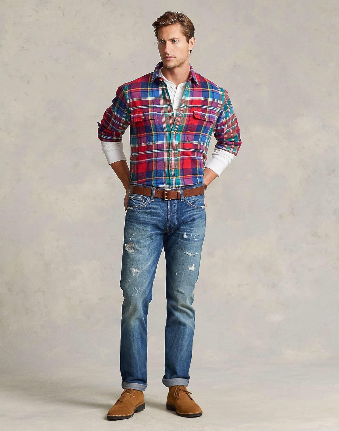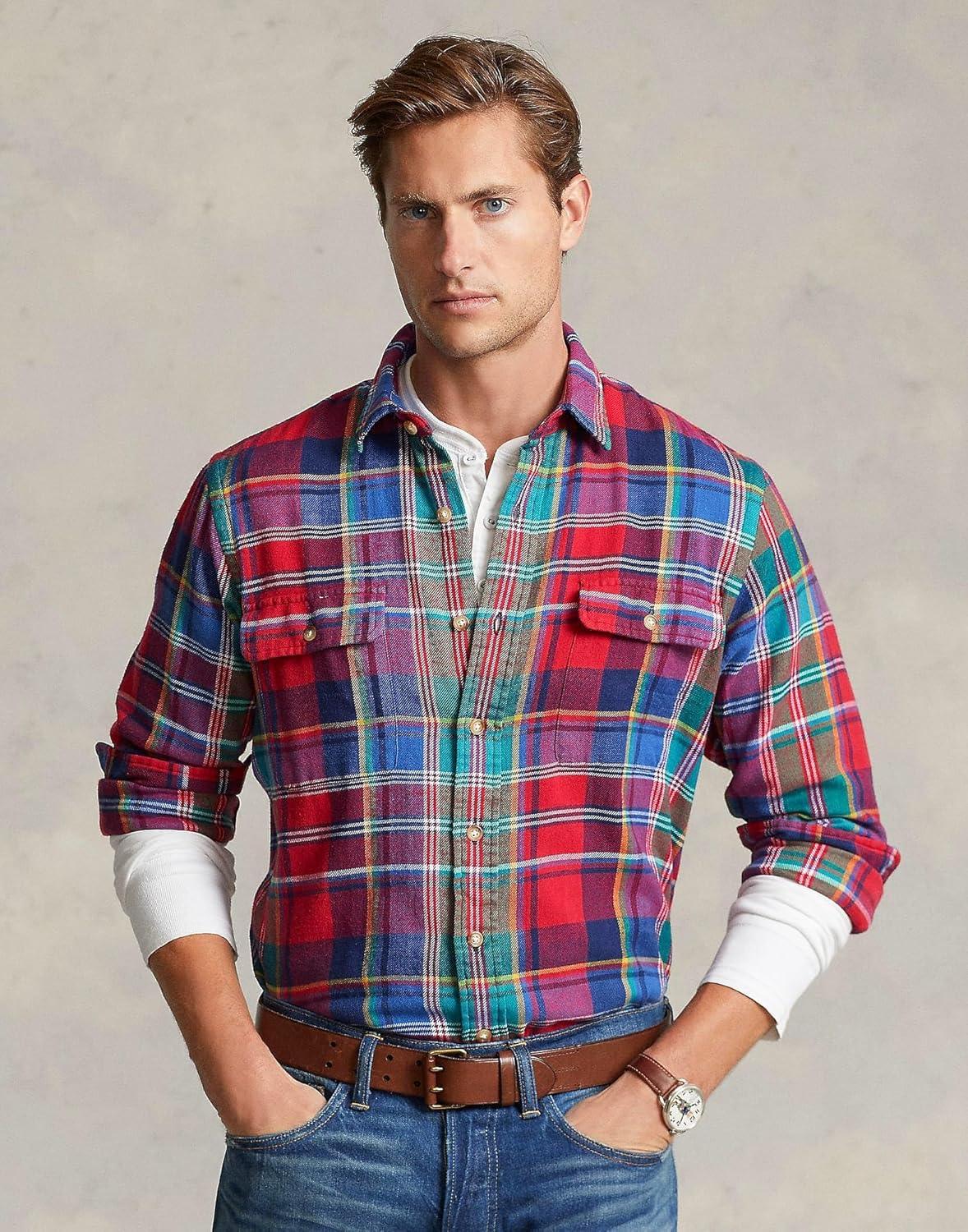Polo Ralph Lauren мужская рубашка Bedford Plaid, Red Blue Multi