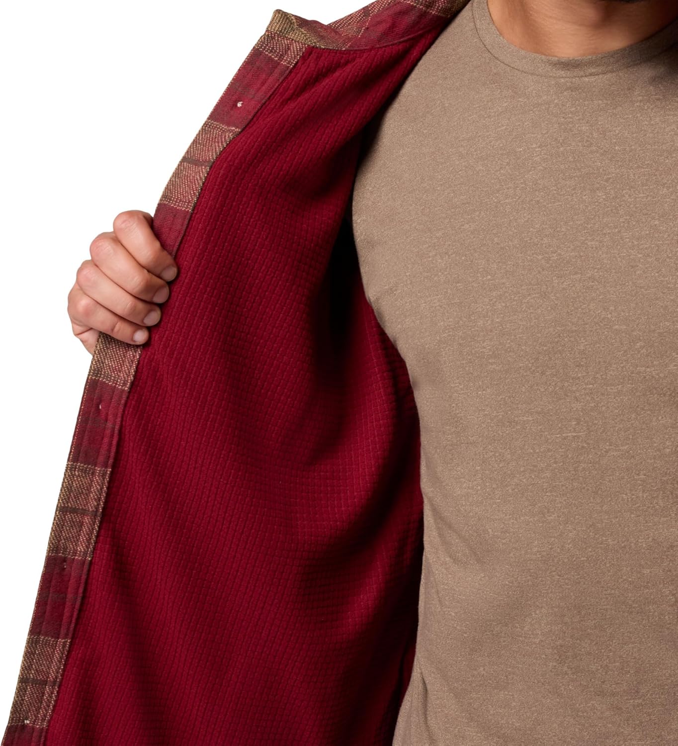 Columbia Mens Saddle Point Warm Lined Flannel, Red Jasper Iron Sight Buffalo