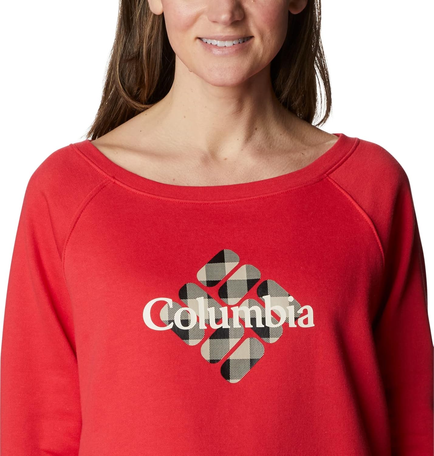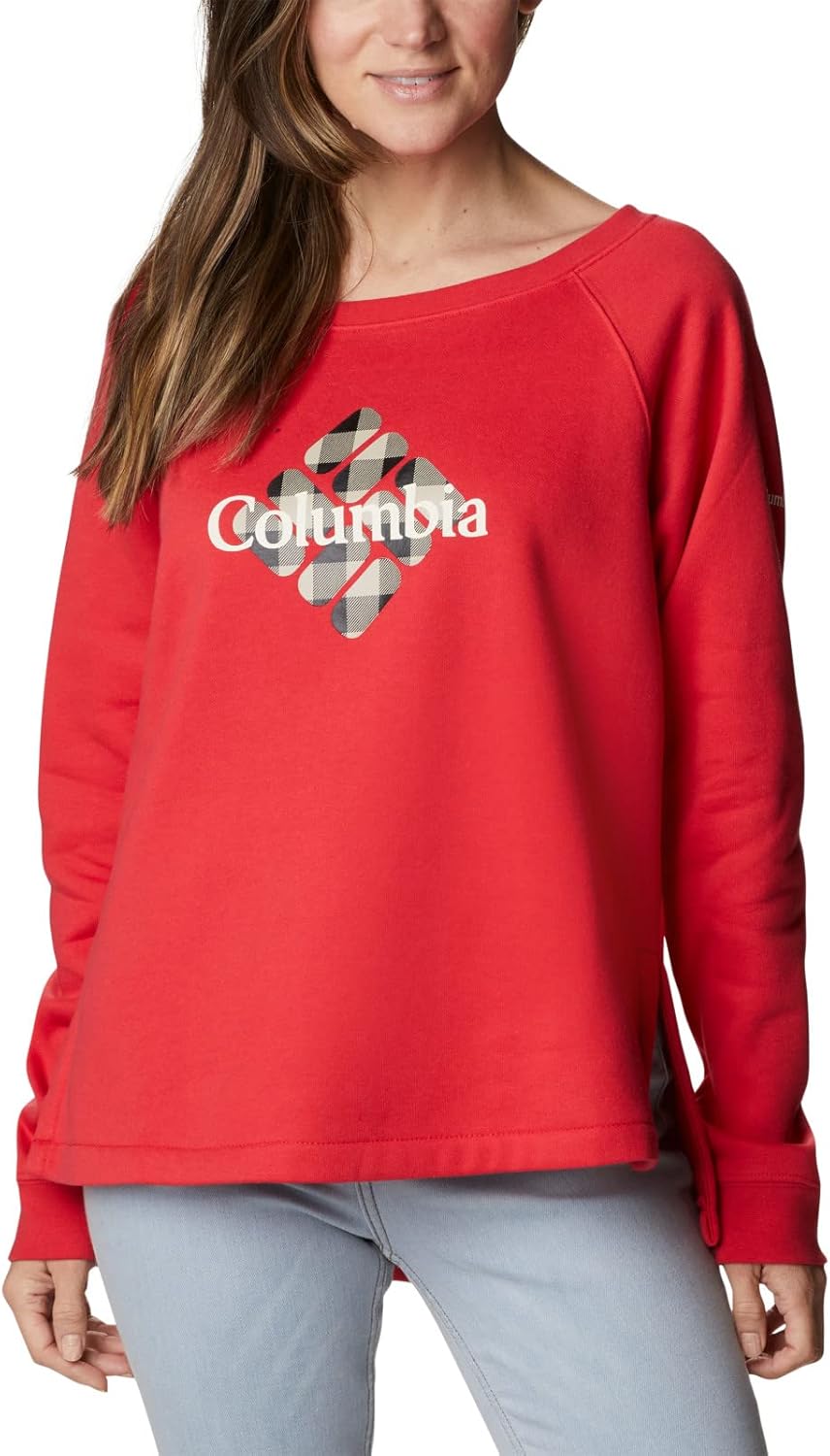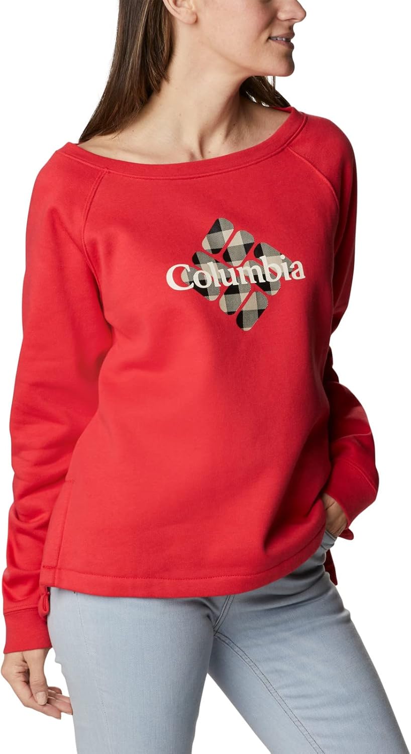 Columbia Women's Trek Special Graphic Crew, Red Lily/Gem Buffalo Plaid