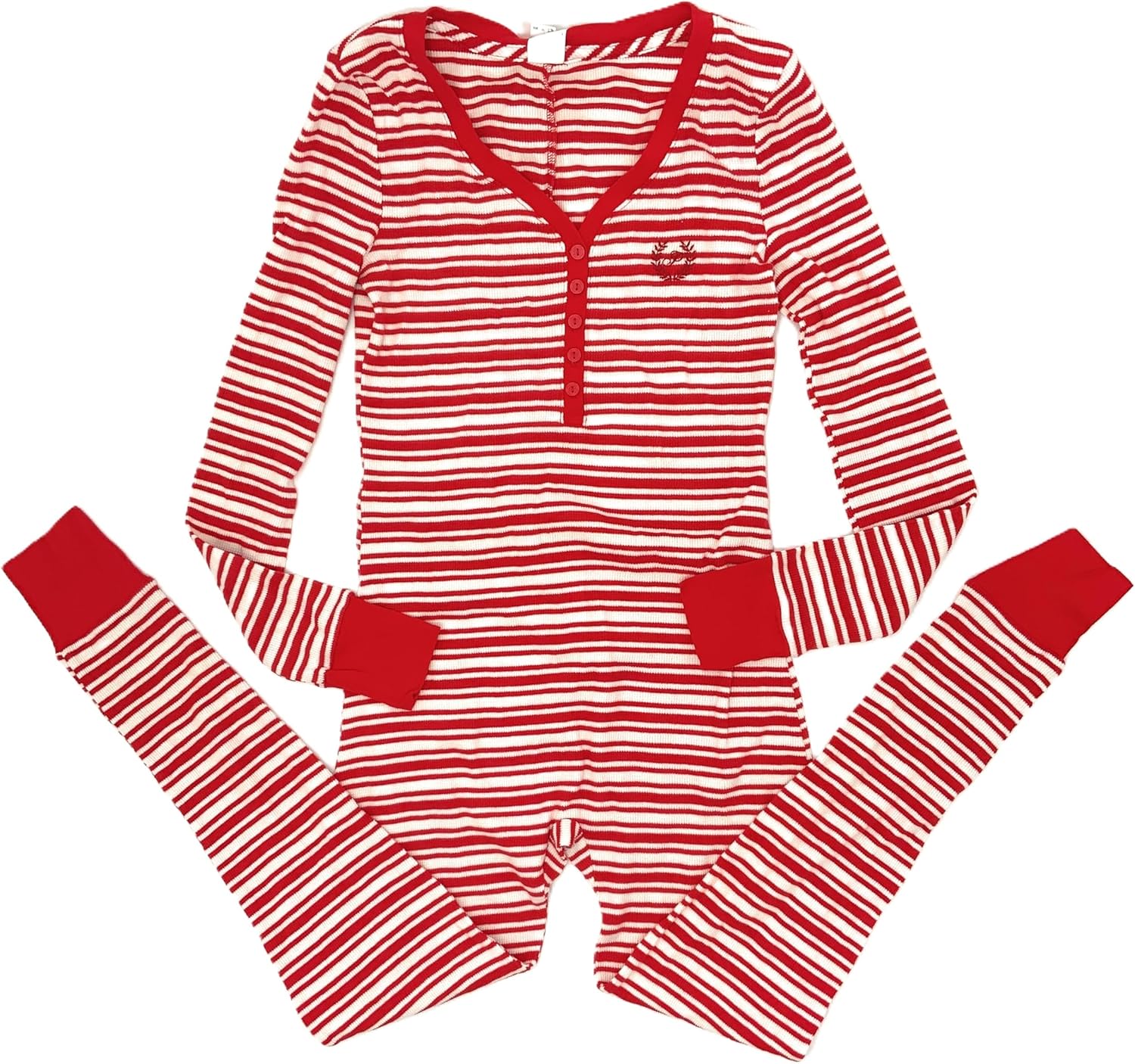 Victoria's Secret PINK термобелье комбинезон для сна, Red/Cream/Stripe
