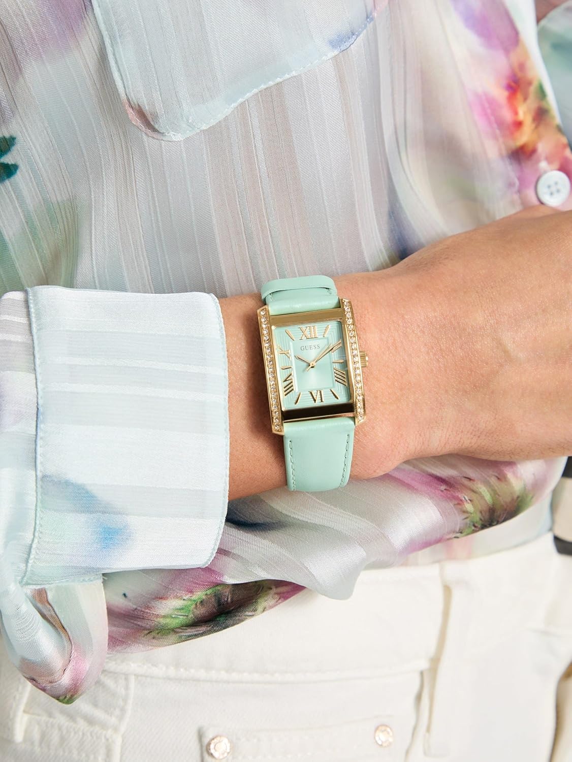 GUESS синие кожаные аналоговые часы, Rose Gold