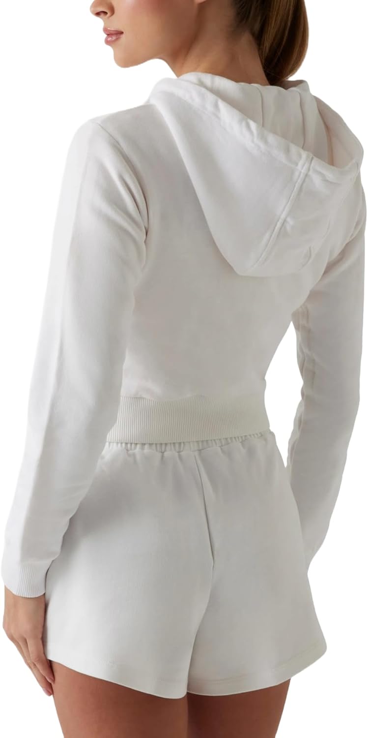GUESS Women's Primula Свитшот на молнии с камнями, Salt White