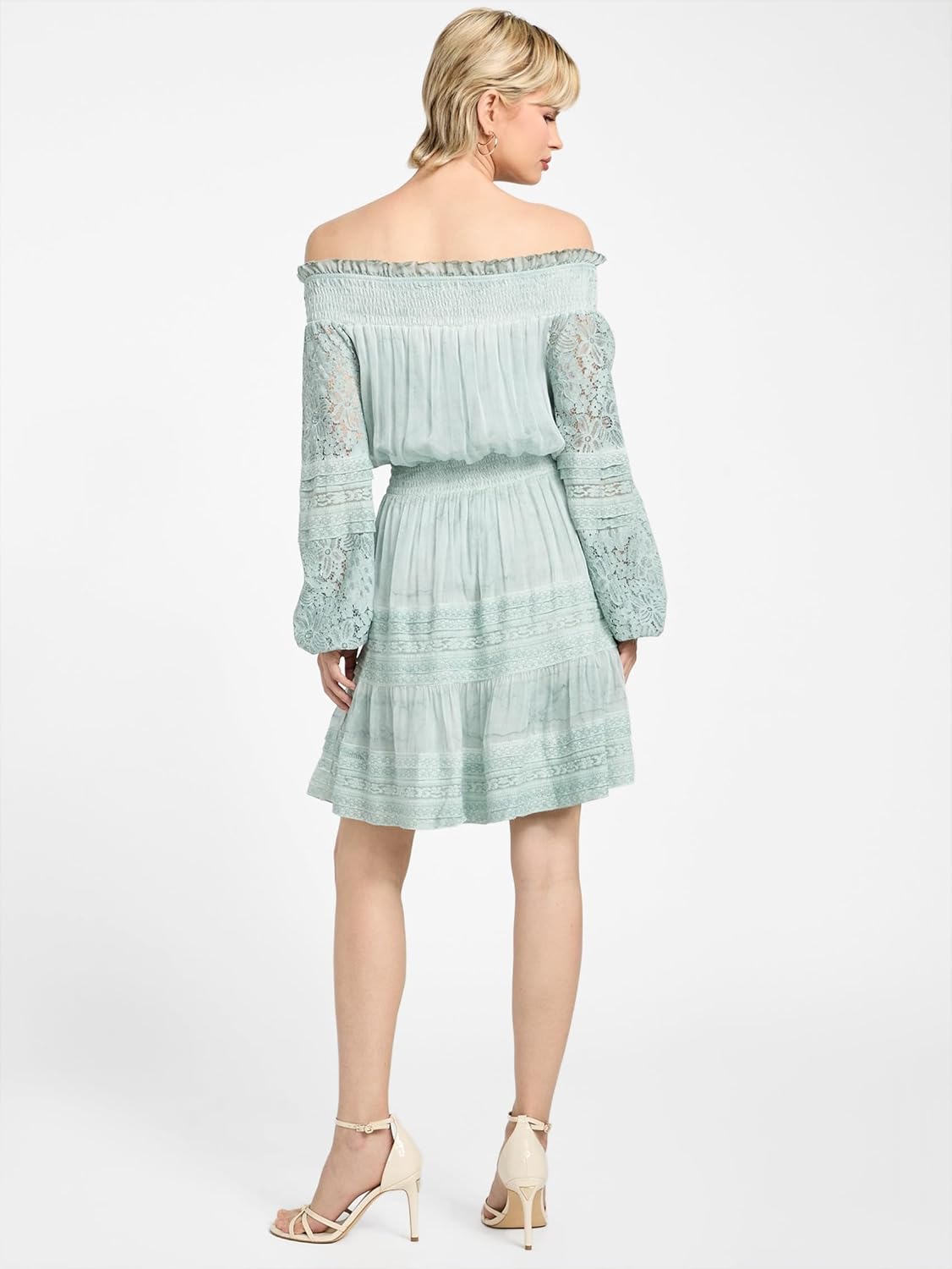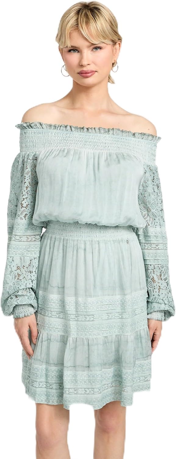 GUESS Женское платье Audrey Off Shoulder Mini, Seafoam Mist Multi