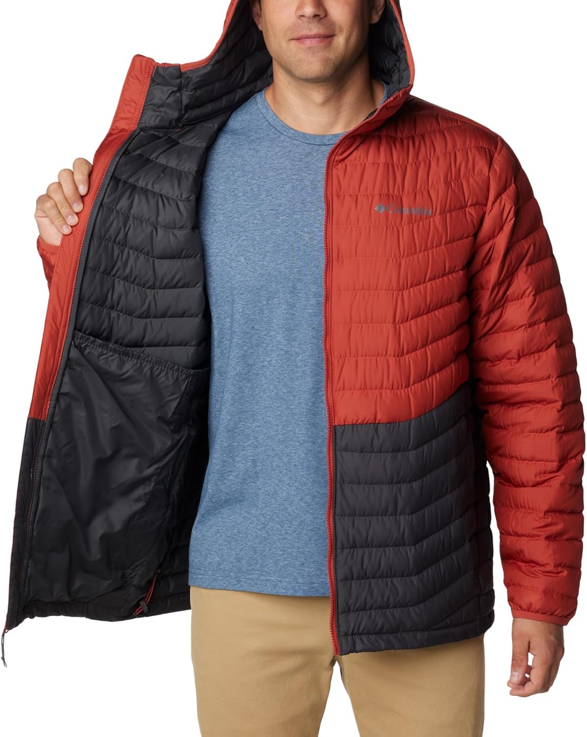 Куртка мужская Columbia Westridge Down Hooded, Shark, Warp Red