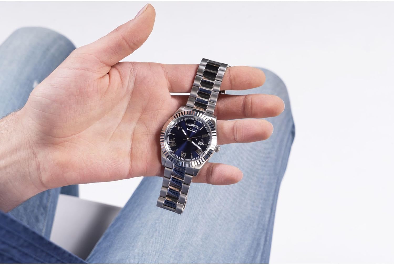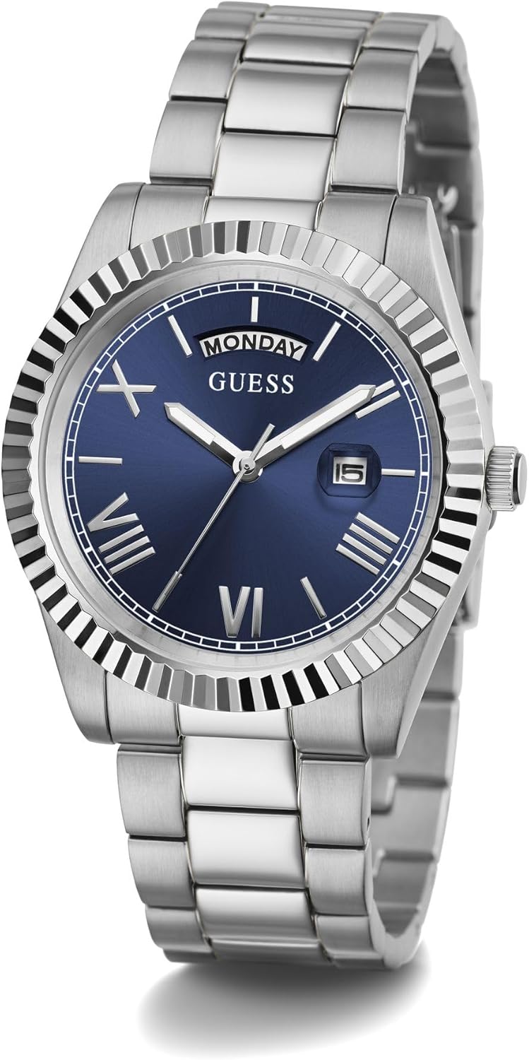 GUESS Silver-Tone и Blue Textured аналоговые часы, Silver Tone/Silver Tone/Blue