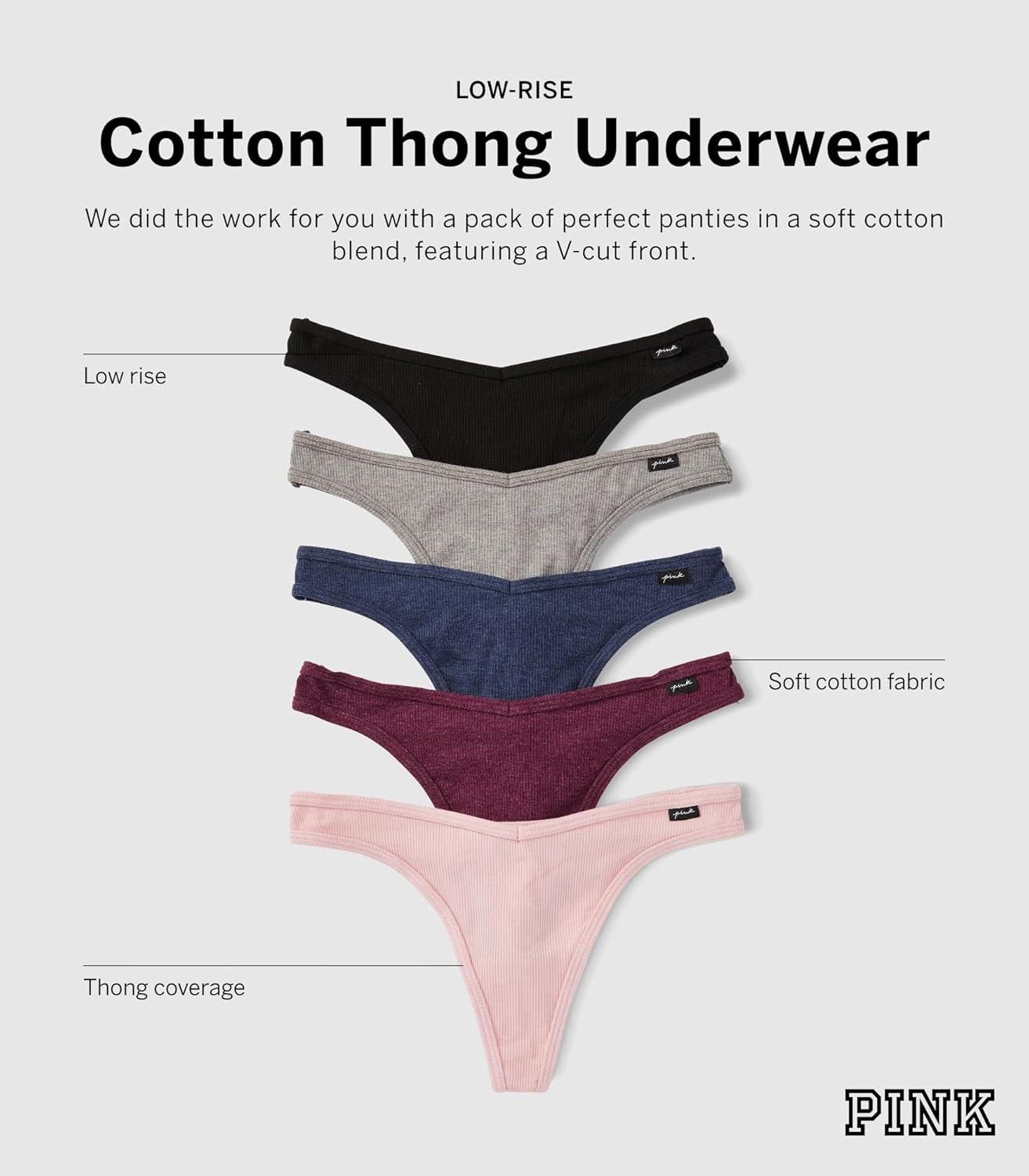 Victoria's Secret PINK Женские хлопковые трусики-стринги, Spring Basic Pack