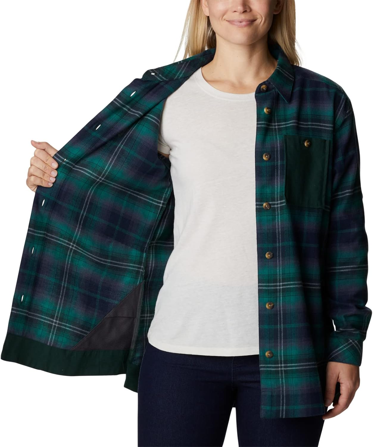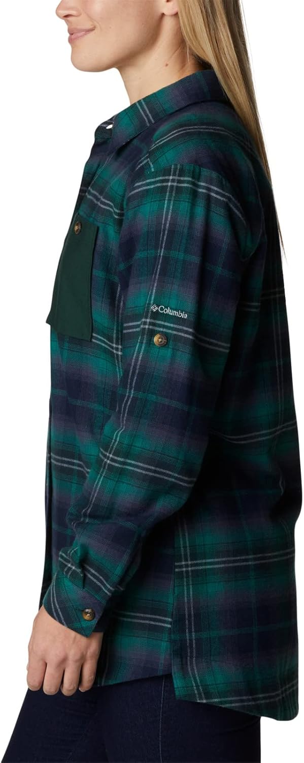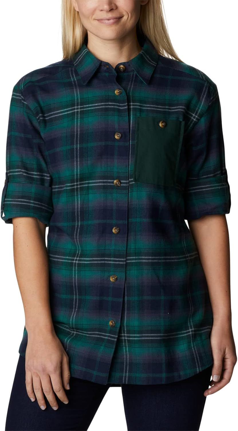 Columbia Womens Holly Hideaway Фланелевая рубашкаButton Down, Spruce Multi Tartan