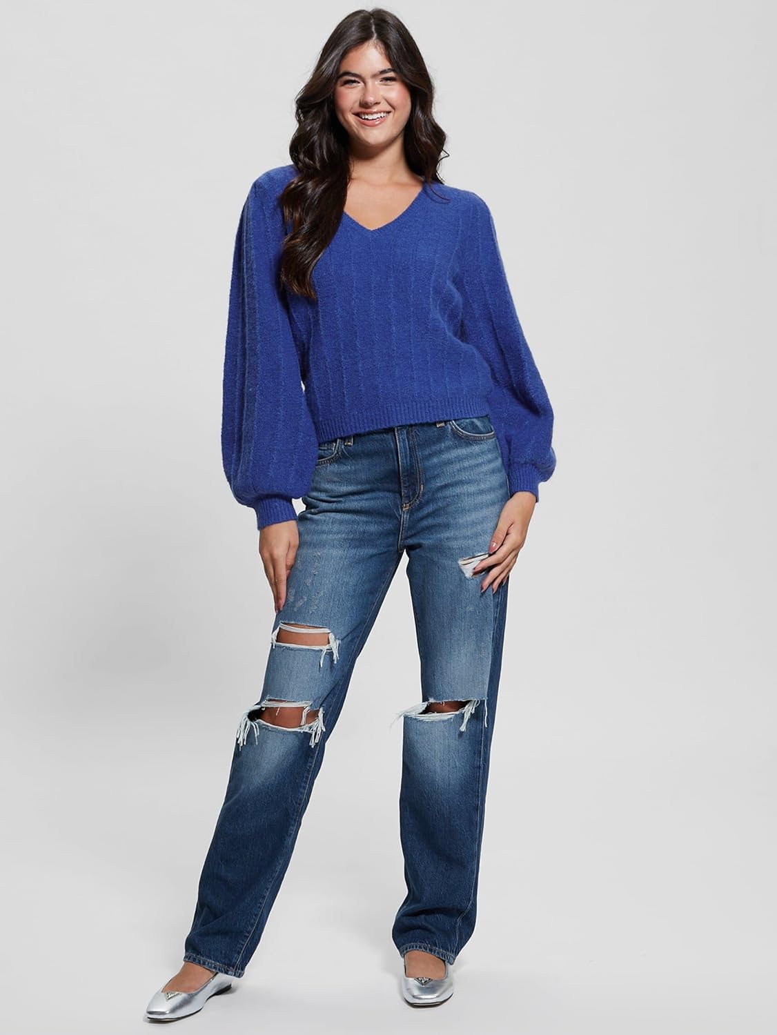 Свитер с V-образным вырезом Madeline Textured GUESS, Surfing Blue