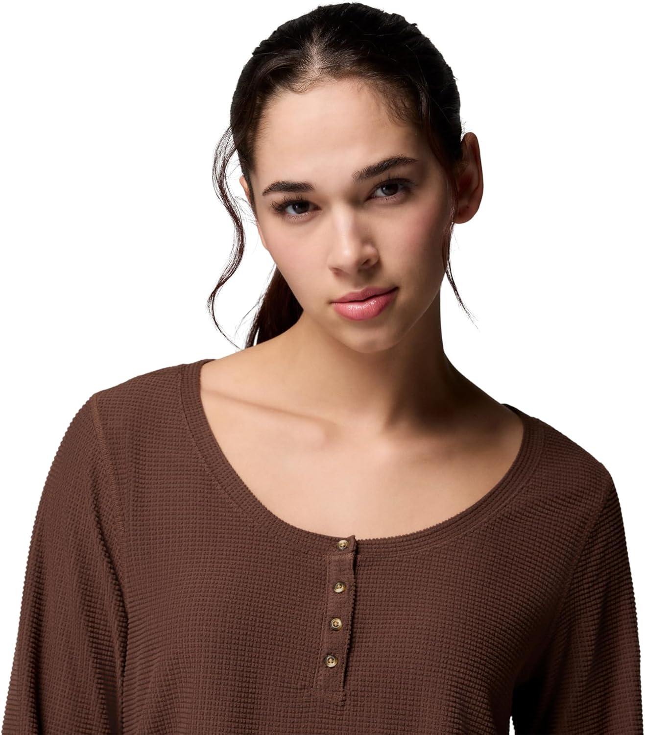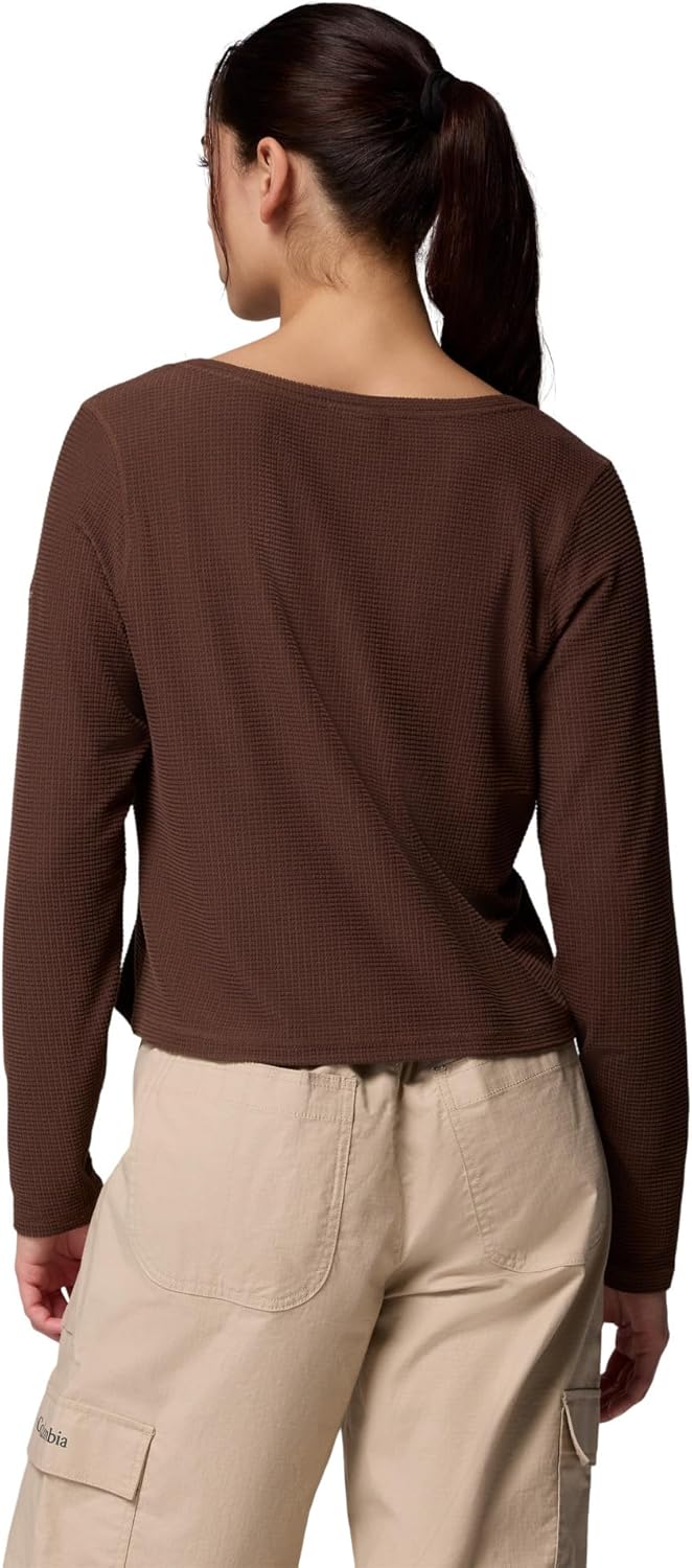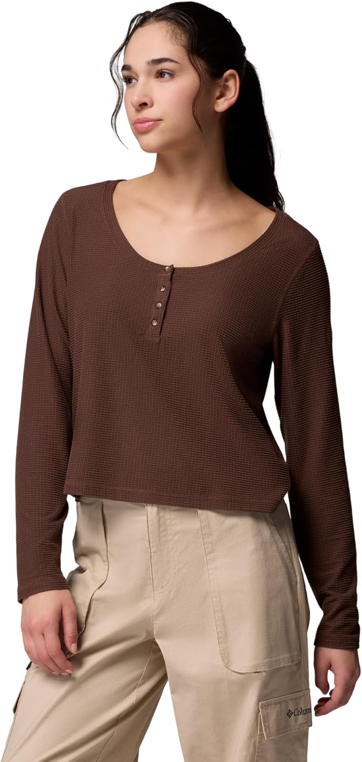 Columbia Women's Brea Falls Grid Henley Long Sleeve, Tobacco
