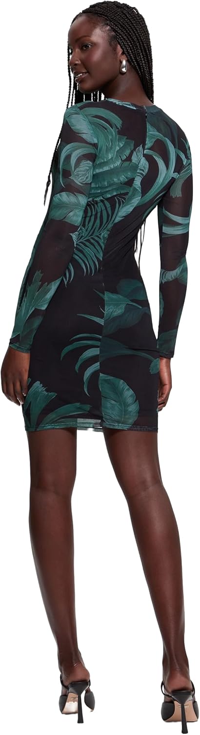 GUESS Женское платье Millie с длинными рукавами, Tropical Eclipse Print Green
