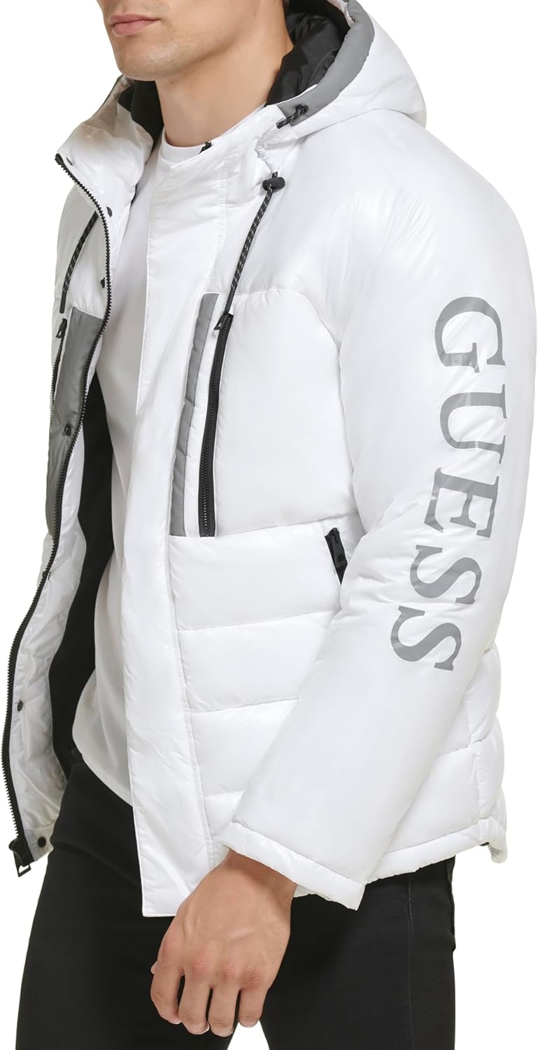 Куртка-пуховик Mid-weight с логотипом на рукаве GUESS, White