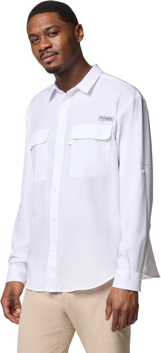Columbia Men's PFG Backwater Long Sleeve Shirt, White