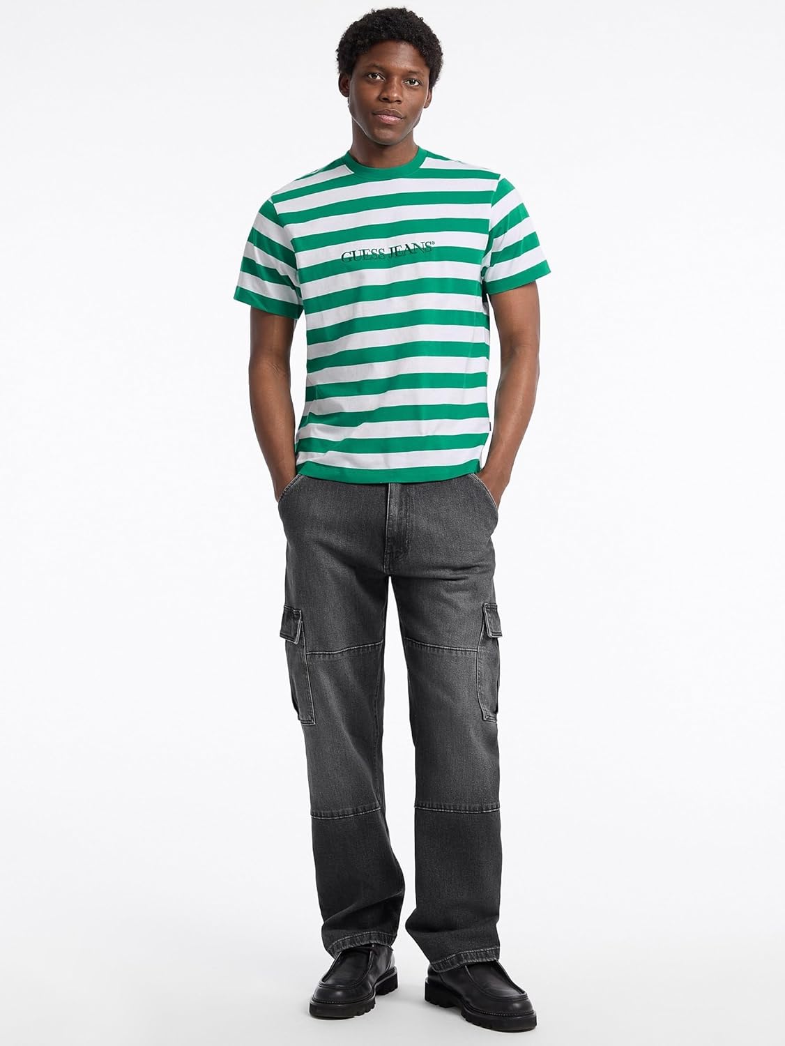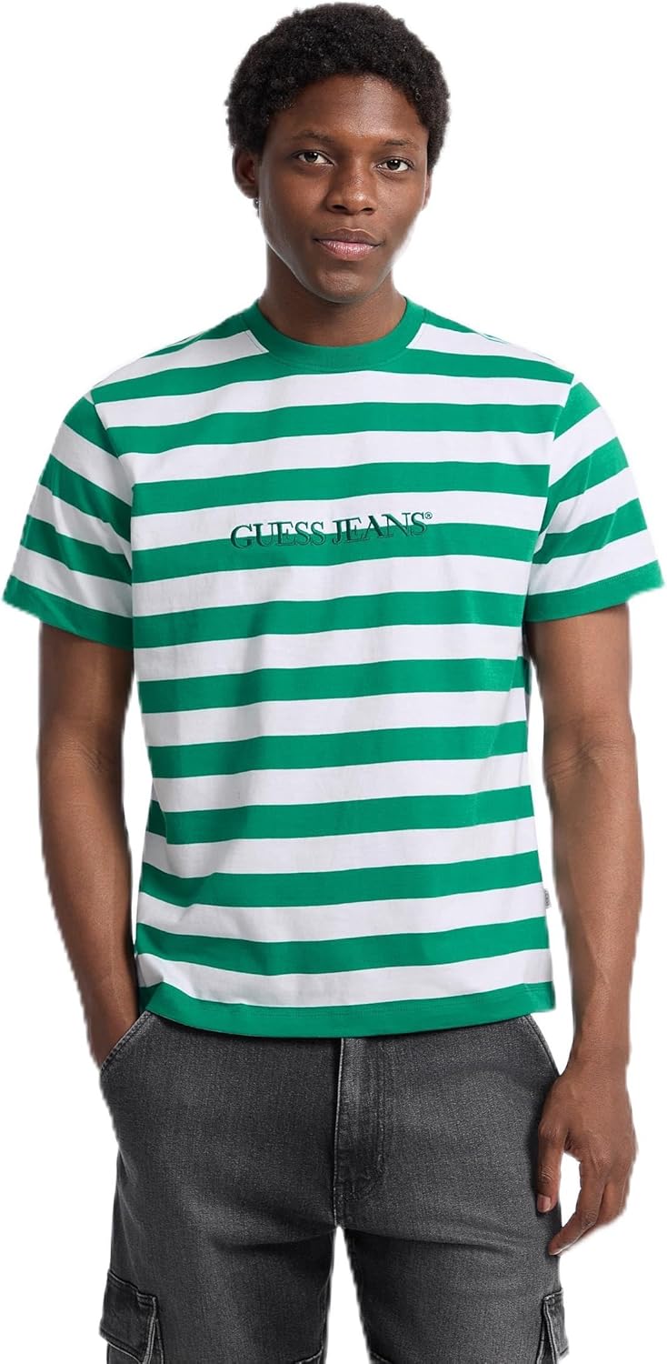 Футболка с полосатым логотипом GUESS, White And Green Leafs Str