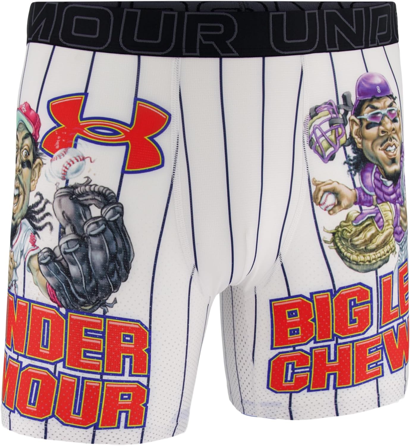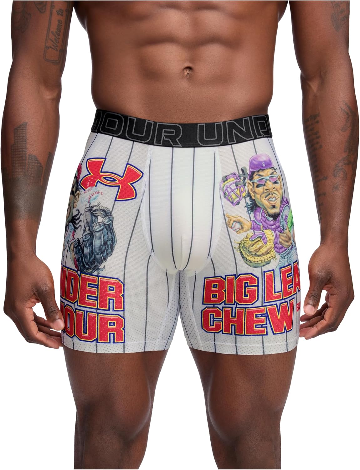 Under Armour мужские боксеры Performance Tech Mesh Print Singles, 6", White Big League Chew - Single