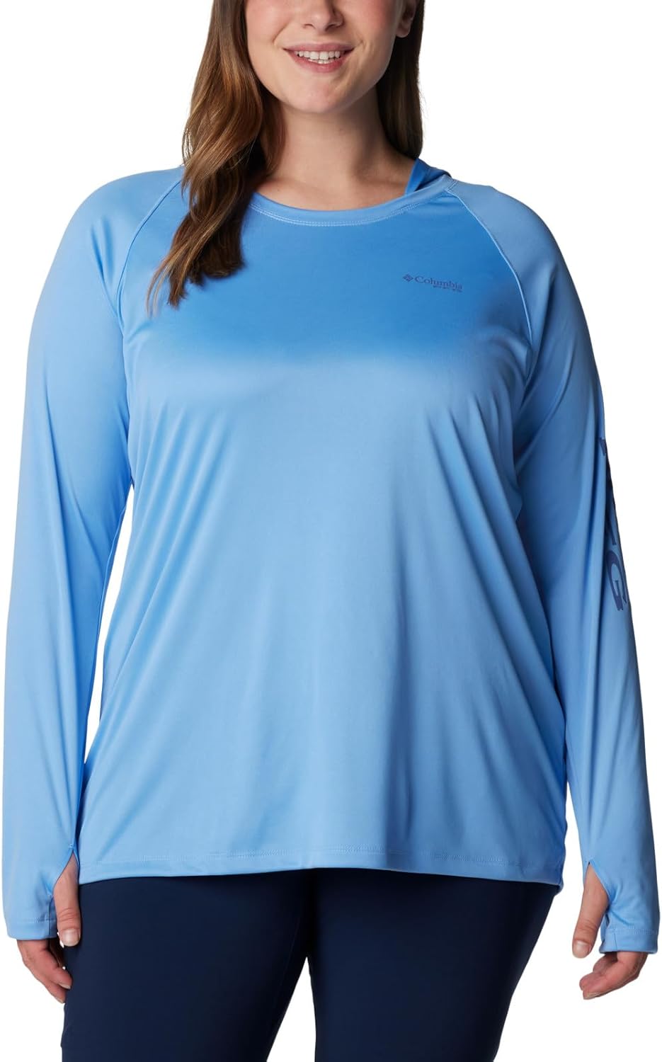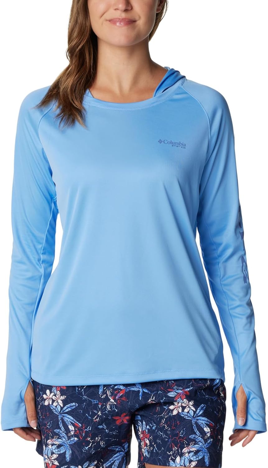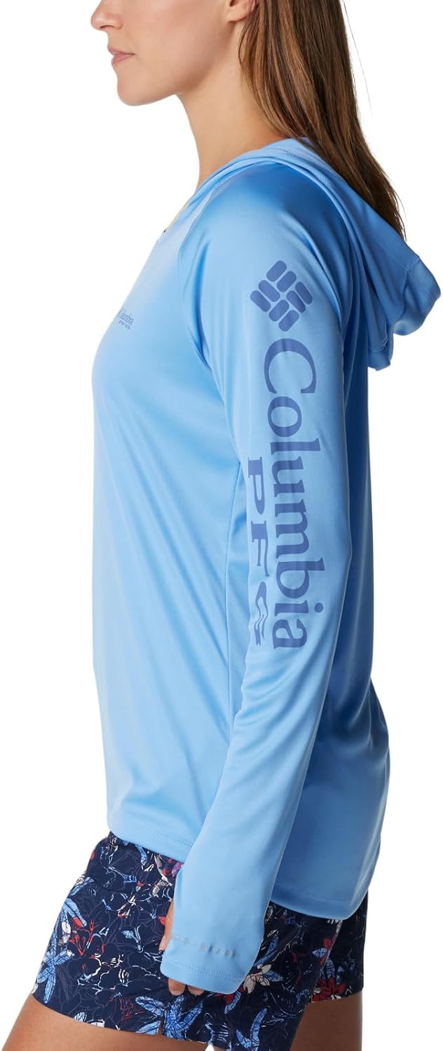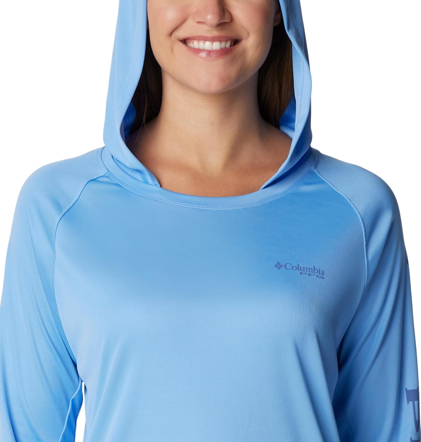 Columbia Women's Tidal Tee Hoodie, White Cap/Bluebell Logo