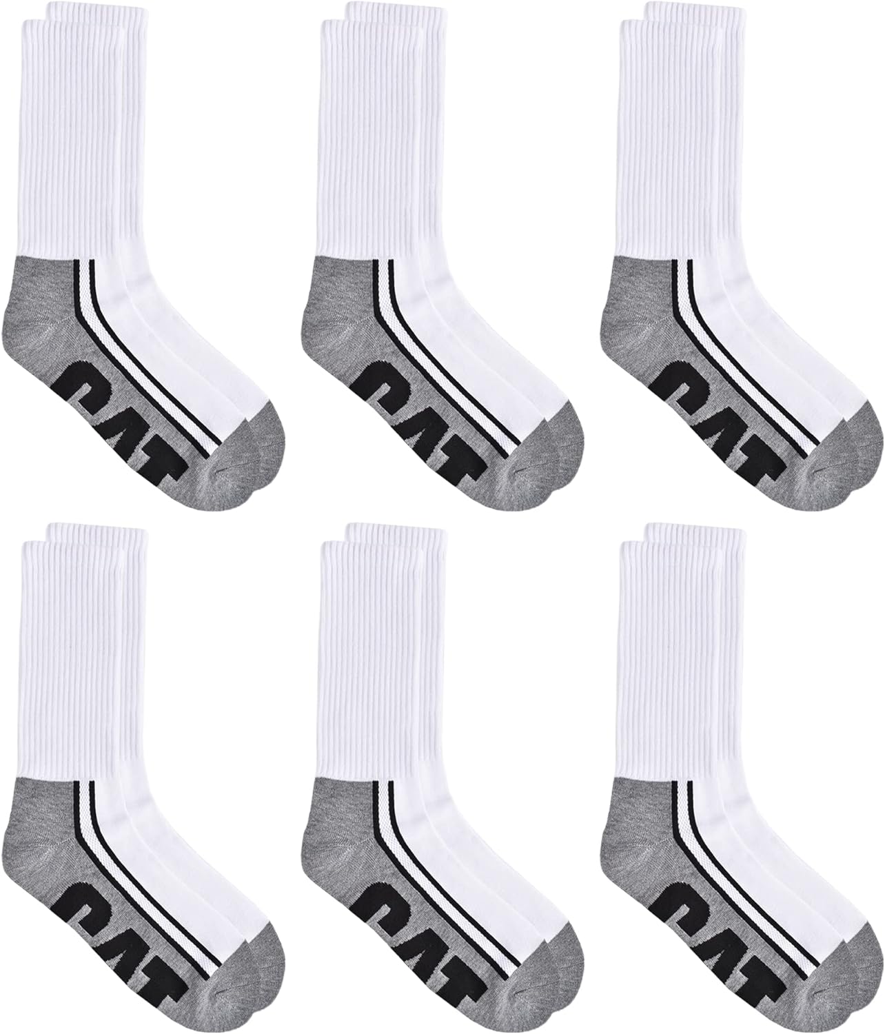 CAT мужские носки 6-pack Half Cushioned Crew, White Logo (6 Pack)