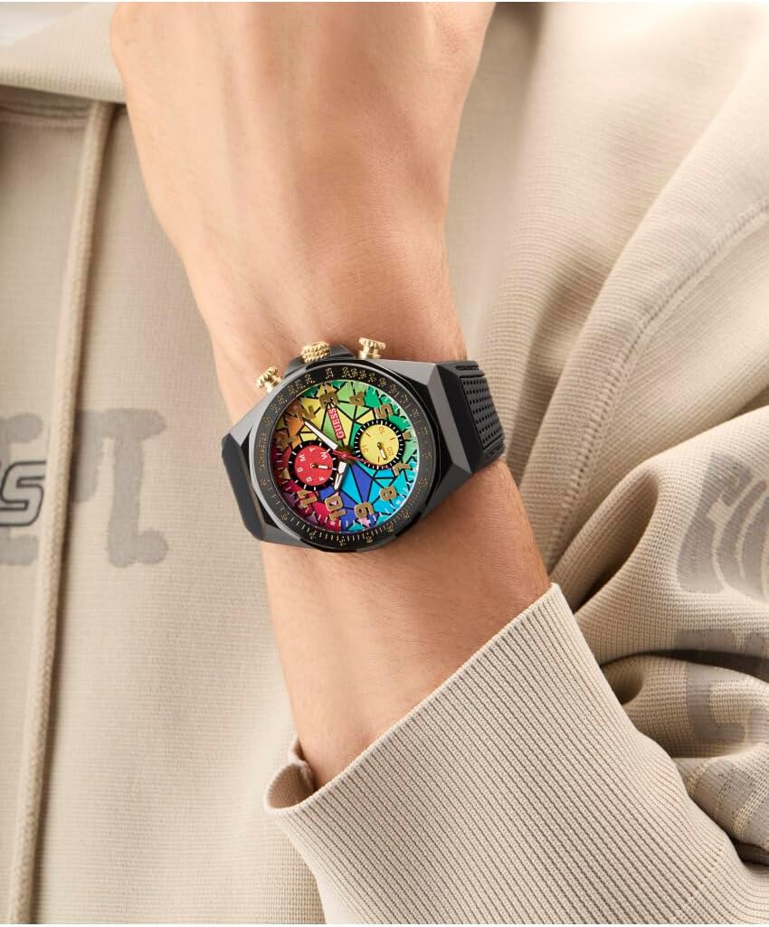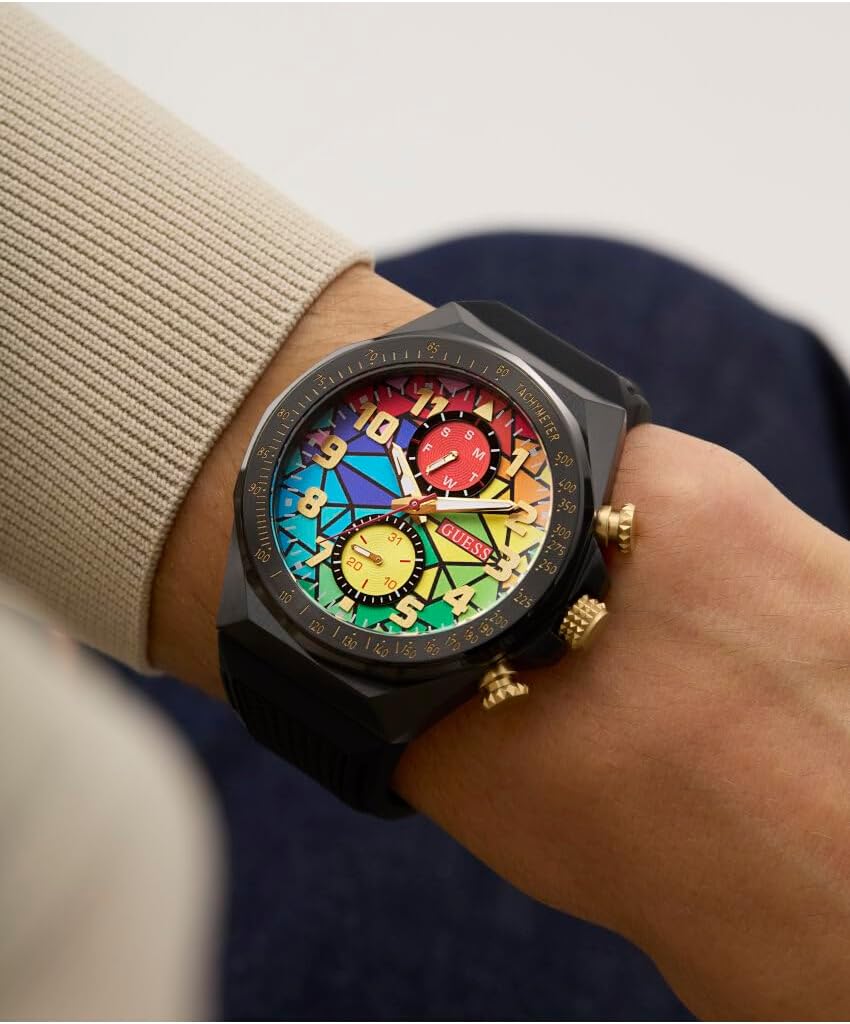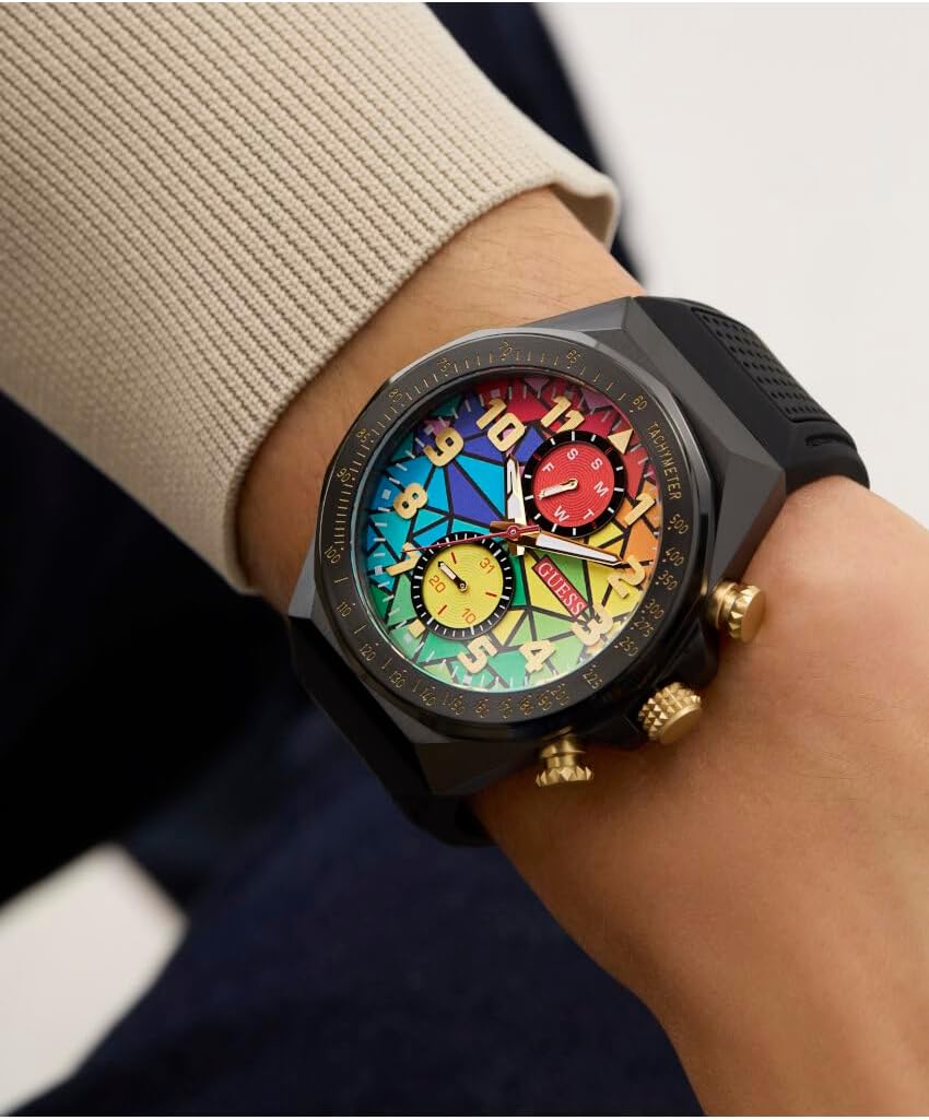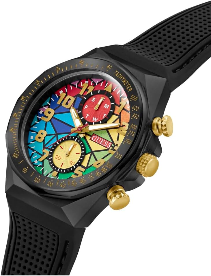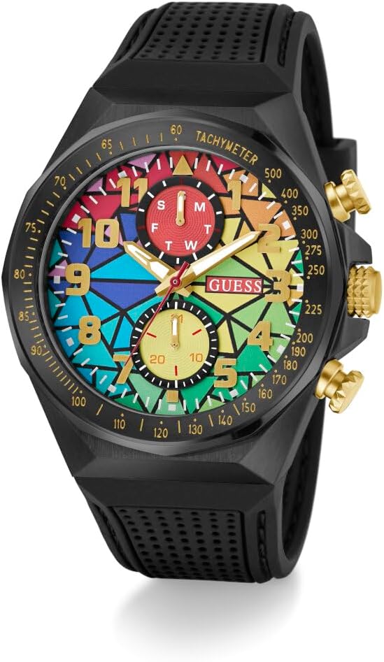 Часы-хронограф GUESS Rainbow Mosaic с черным силиконовым корпусом, White Multi