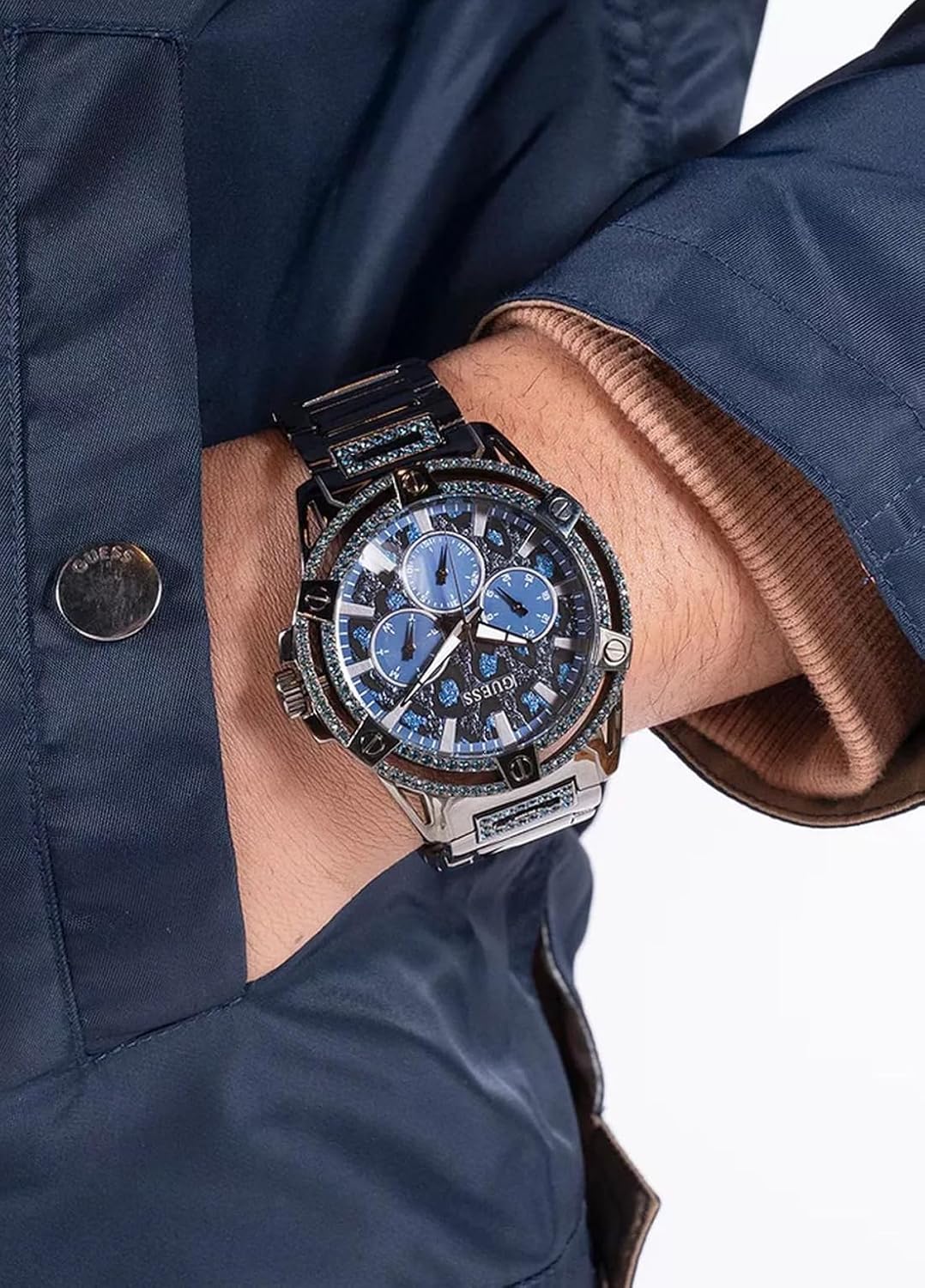 GUESS серые и синие многофункциональные часы