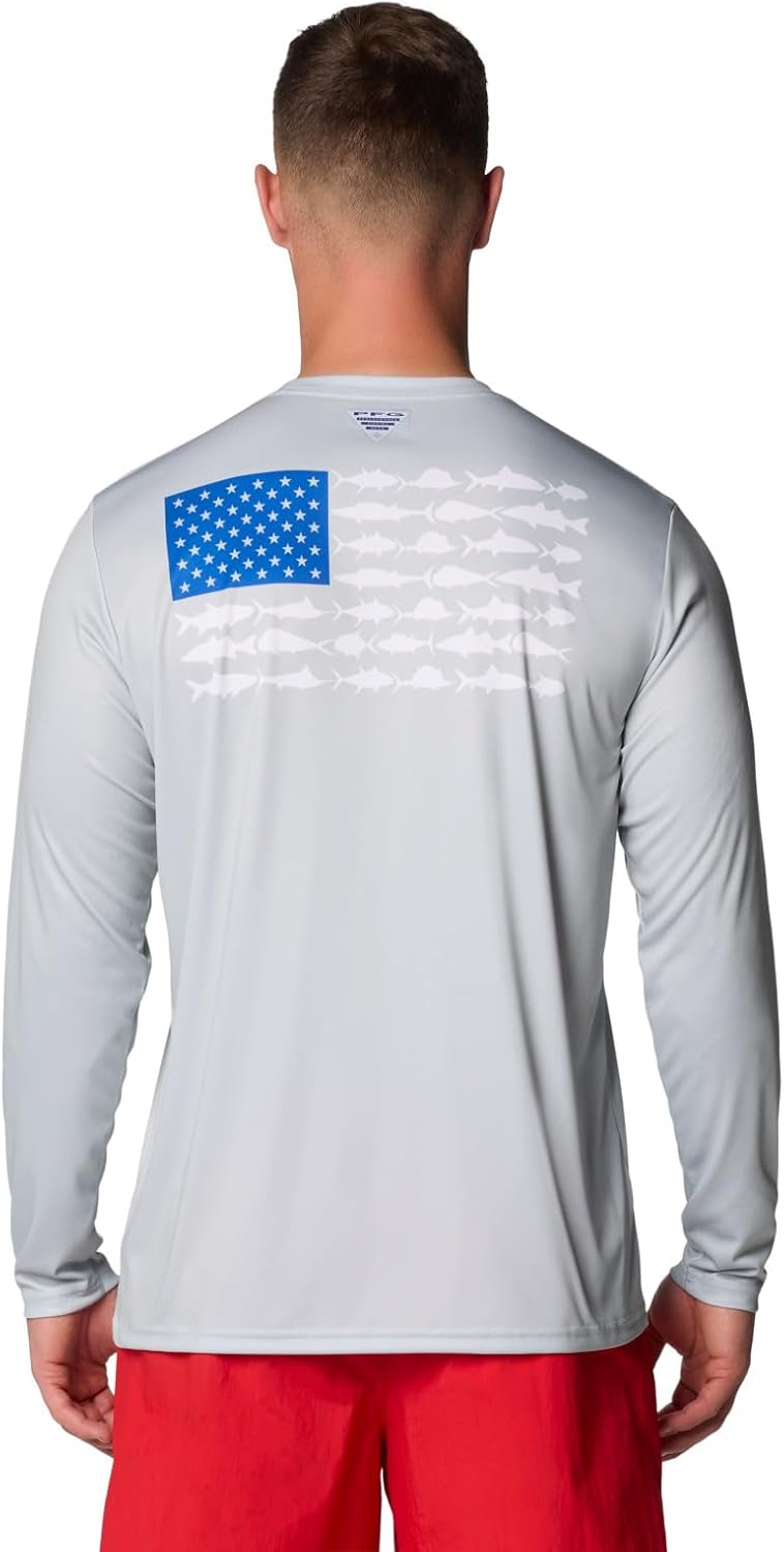 Columbia Men's Terminal Tackle PFG Fish Flag Long Sleeve, Cool Grey/Vivid Blue, Small