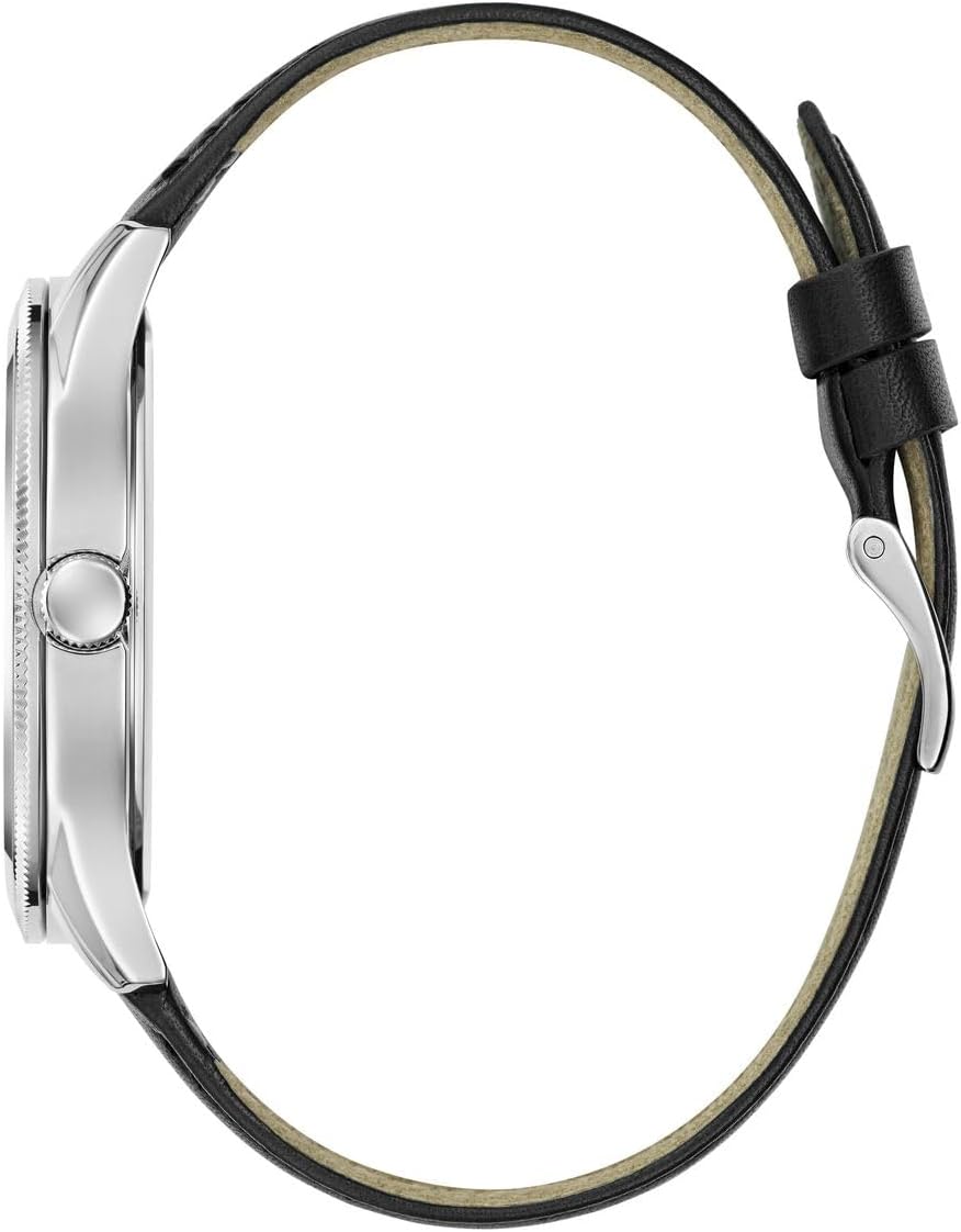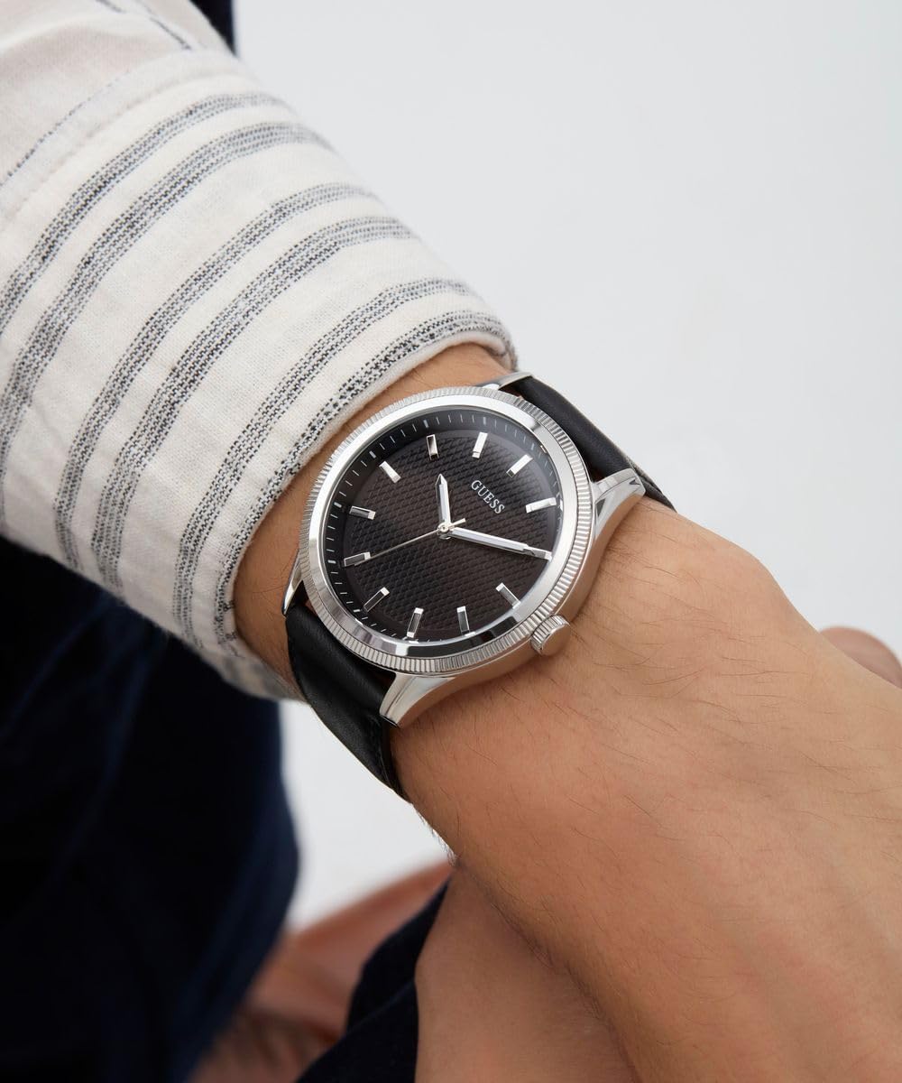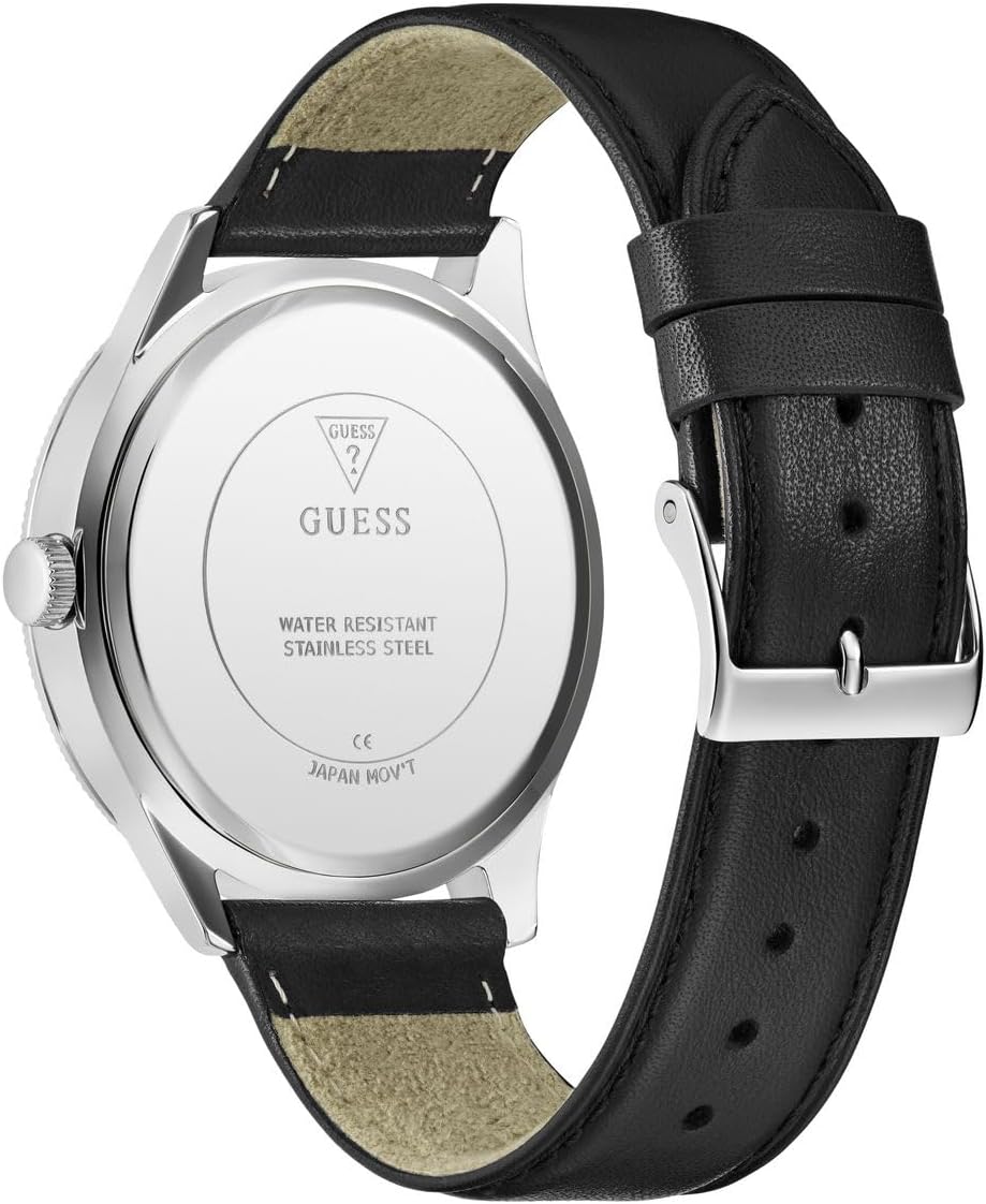 Часы GUESS аналоговые, кожанный ремешок, серебристый циферблат