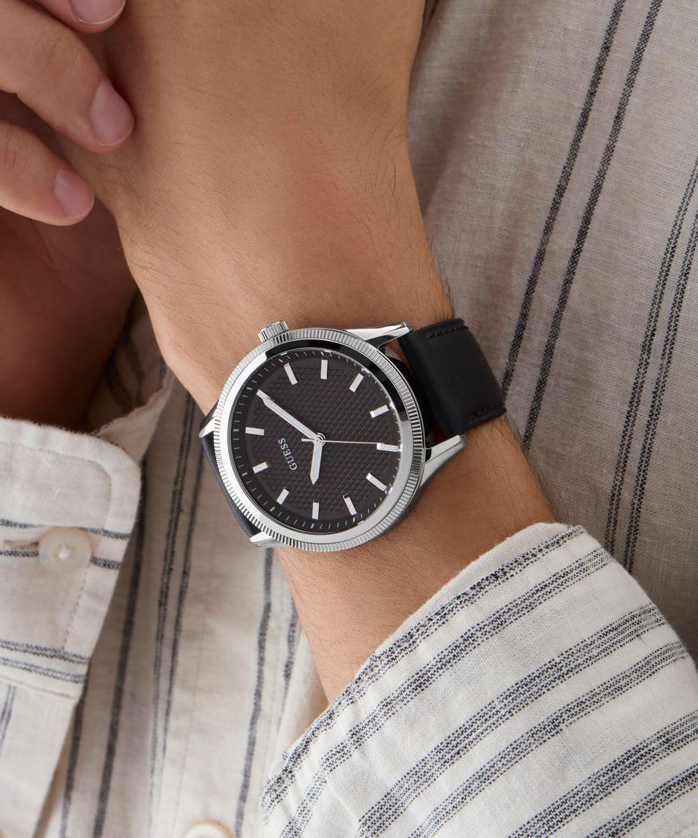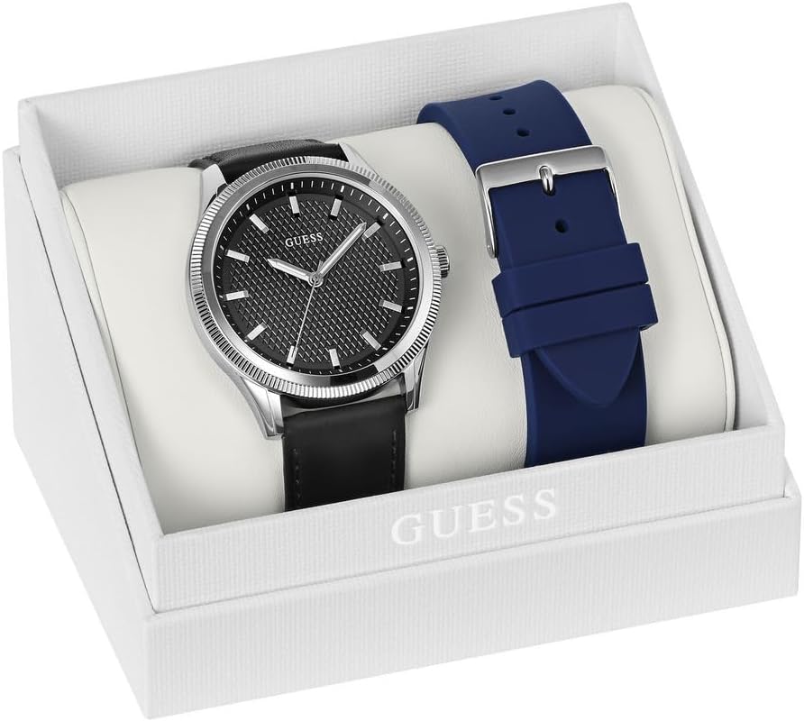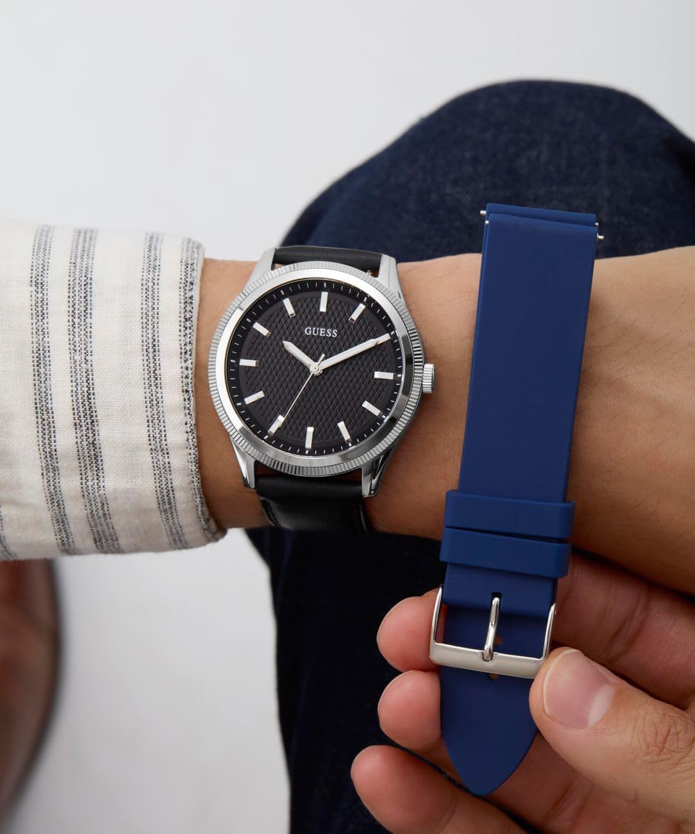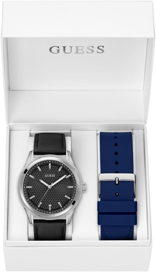 Часы GUESS аналоговые, кожанный ремешок, серебристый циферблат