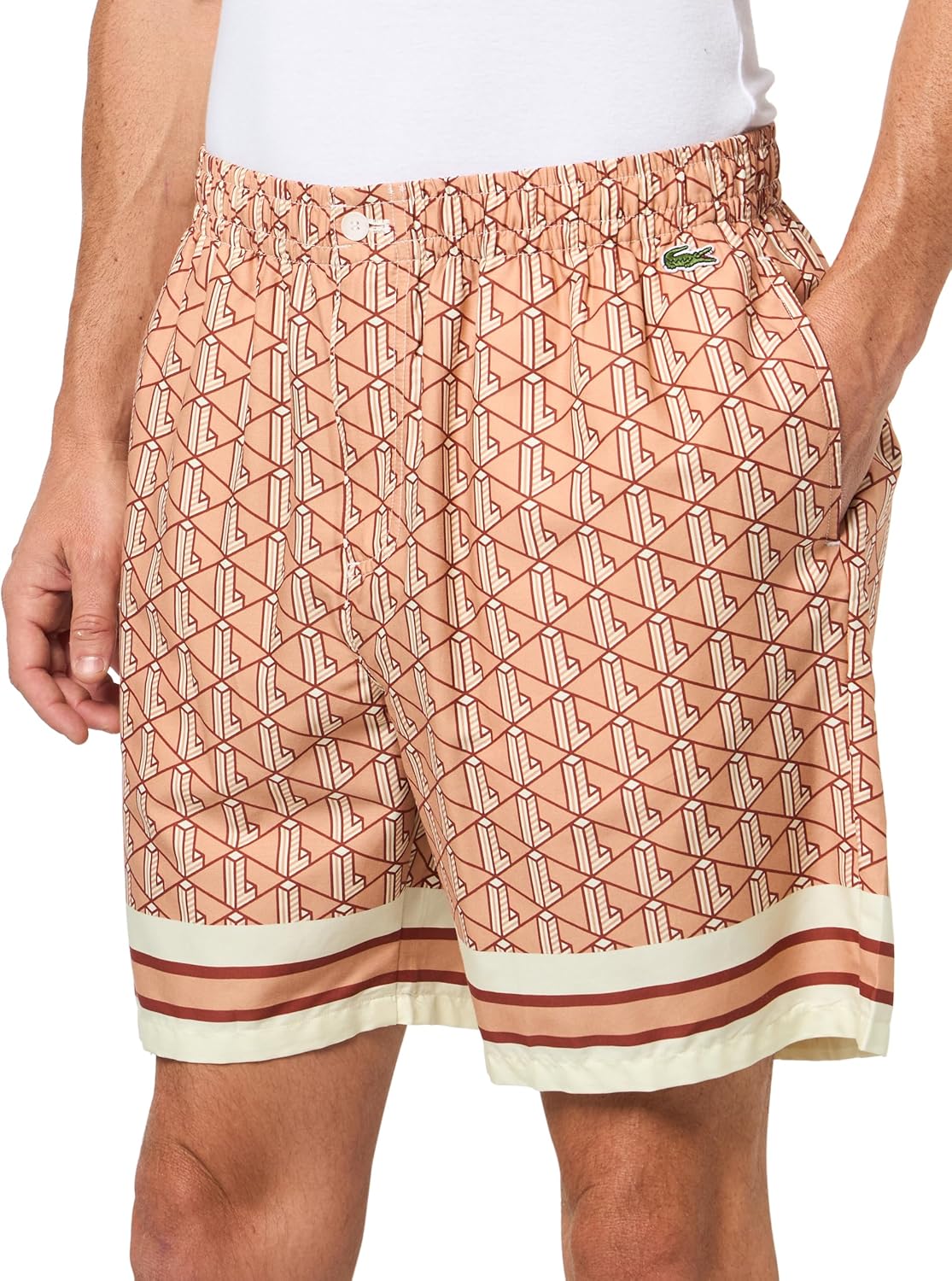Lacoste мужские шорты relaxed fit monogram, latte, clay и white, large