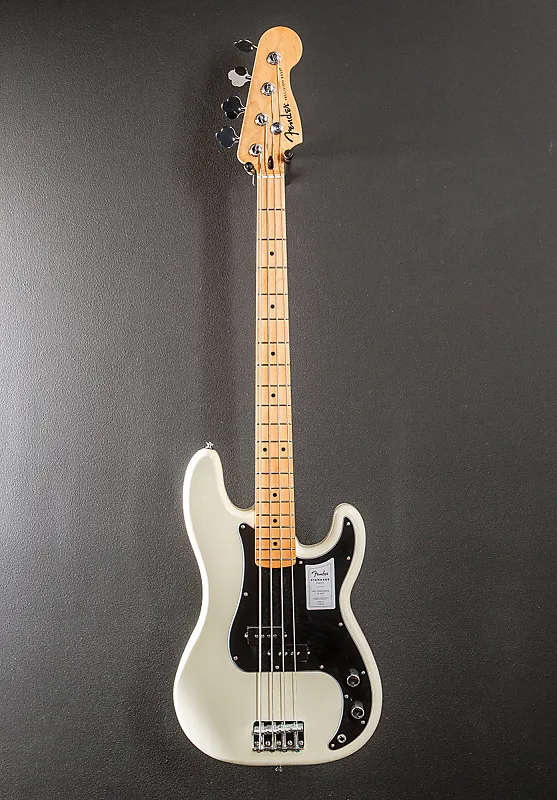 Цвет: Olympic White, Сделан в Индонезии, Глянцевое полиэстеровое покрытие корпуса, Корпус из тополя, Гриф из клена формы Modern C с радиусом накладки 9.5" из клена и медиум-джамбо ладями, Длина мензуры 34", Ширина верхнего порожка 1.625", Стандартный керамический раздельный звукосниматель Precision Bass с основными регуляторами громкости и тембра, Стандартный верхний бридж с сатинированными хромированными стальными седлами, Стандартные открытые колки, Вес 8.2 фунта, Чехол в комплект не входит