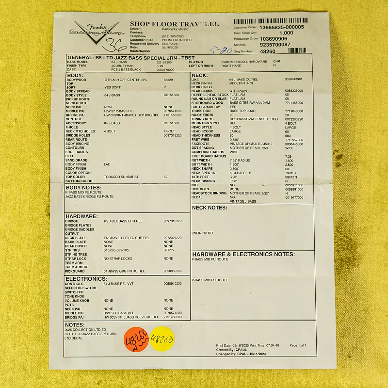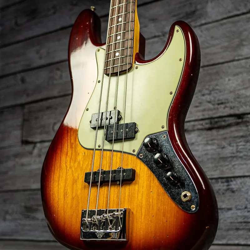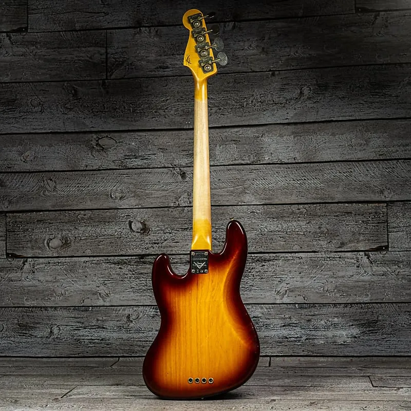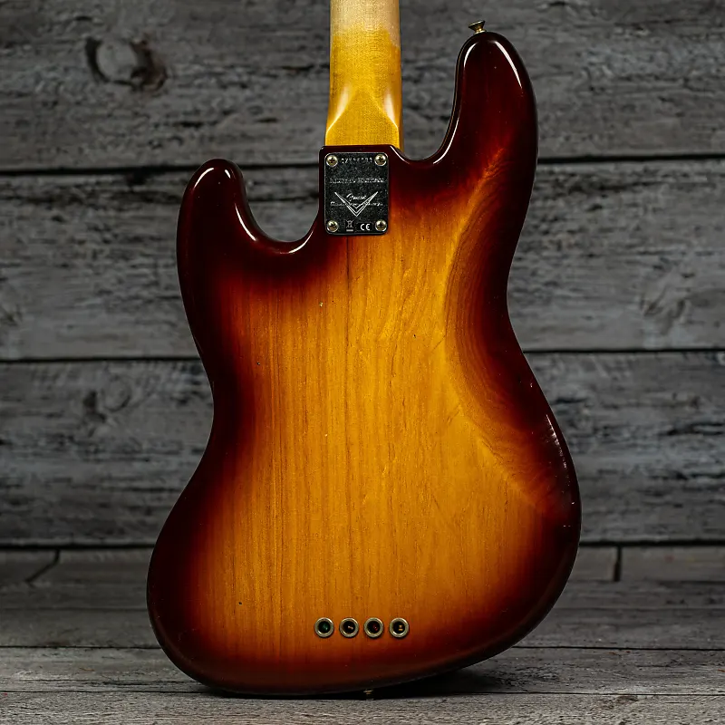 Бас оснащен легким двухсекционным корпусом из отборного ясеня в сочетании с грифом из клена с радиальной распилкой для резонансного, звонкого звучания. Гриф из клена с радиальной распилкой имеет удобный профиль 1960 Jazz Bass «U» и накладку из розового дерева класса 3A. Он включает 20 ладов Jescar Vintage, точки из перламутра и ширину верхнего порожка 1,5 дюйма для комфортной игры.