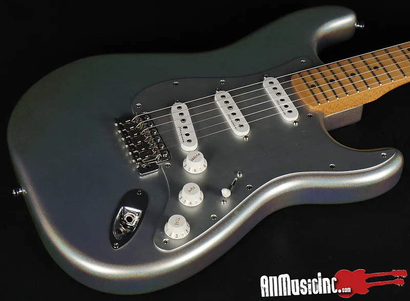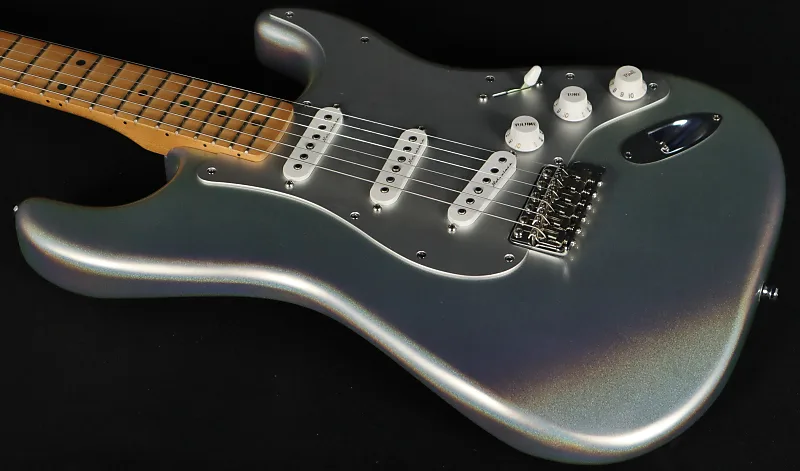 Окрас в ослепительном Chrome Glow и шестидесятых годов форма грифа «C» из клена, звукосниматели Vintage Noiseless и анодированная алюминиевая накладка обеспечивают легкость игры, классическое звучание Strat и выдающуюся внешность.