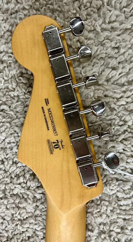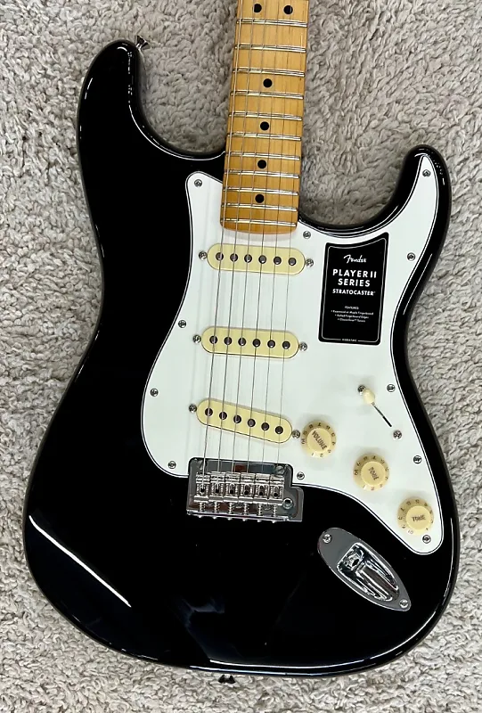 Гитара Fender Player II Stratocaster, гриф из клена, черная отделка - MIMСовершенно новая, поступление в конце июля 2024 года! Butler Music теперь имеет на складе все 79 моделей новой серии Player II, с несколькими экземплярами большинства моделей в наличии. Чтобы точно передать качество этих отличных обновленных моделей, мы будем использовать реальные фотографии каждой гитары, которую размещаем, а также отправлять их настроенными и готовыми к игре, включая указание веса каждой гитары или баса, чтобы вы точно знали, что получаете. У этой модели серийный номер MXS24030857, весит 7 фунтов 14,2 унцииСовершенно новая серия Player II развивает чрезвычайно популярную формулу Player. Новые функции серии Player II включают никогда ранее не использовавшиеся винтажные автоцвета, накладки из розового дерева, улучшенные мосты и фурнитуру, закругленные края грифа, новый оттенок шеи, состаренные пластиковые детали, а также новые варианты древесины корпуса из резонирующего ясеня и камерной махагони. оригинальная серия отличная - Player Pickups, современные грифы формы „C“, ладовые доски с радиусом 9,5 дюйма и средне-джамбо лады. Новая серия Player II расширяет эти прочные основы, предлагая широкий спектр обновлений и новых опций. Она разработана для музыкантов, готовых сделать следующий шаг в своем музыкальном пути, и Player II становится новым эталоном доступного качества и производительности. Вот информация об этой конкретной гитаре:Корпус - Ольха Отделка корпуса - Черный глянцевый полиэстер Гриф - Клен, современный форма «C» Отделка грифа - Слегка сатинированное уретановое покрытие сзади и глянцевое уретановое покрытие спереди Ладовая доска - Клен толстого типа, радиус 9,5” (241 мм) Лады - 22, средне-джамбо Маркировка позиции - Черные точки Материал и ширина верхнего порожка - Искусственный кость, 1.650” (42 мм) Колки - Классические колки Fender Длина мензуры - 25,5” (64,77 мм) Мост - 2-точечный синхронизированный тремоло с изогнутыми стальными седлами Звукозащитная планка - 3-слойная пергаментная Звукосниматели - Player II Series Alnico 5 Strat Single Coils переключатель - 5-позиционный Регуляторы - главный звук, тембр 1, тембр 2 Ручки - пластик состаренного белого цвета Фурнитура/отделка - никель/хром Струны - Fender USA 250L, никелированная сталь, калибр .009-.042 Чехол или сумка - отсутствует
