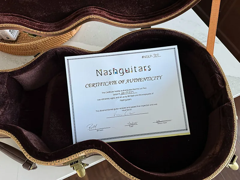 Состояние: Эта гитара является конверсией Nash 2025 года на базе старой Gibson Les Paul Standard, серийный номер 204120379. Покупаете у авторизованного дилера Nash Guitars. На фотографиях изображена продаваемая гитара.