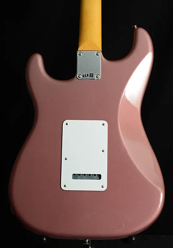 Fender Vintera '60s Modified Stratocaster в цвете Burgundy Mist Metallic Вес: 8.0 lbs. Серийный номер: MX21020471 Материал корпуса: Ольха Отделка корпуса: Глянцевый полиэстер Форма корпуса: Stratocaster Материал грифа: Клен Отделка грифа: Сатиновый уретан с глянцевым уретановым лицом головки Форма грифа: Современный "C" Длина мензуры: 25.5" (648 мм) Материал накладки: Пао Ферро Радиус накладки: 9.5" (241 мм) Количество ладов: 21 Размер ладов: Medium Jumbo Материал порожка: Искусственный кость Ширина порожка: 1.650" (42 мм) Маркировка позиций: Белая точка Регулировочный стержень: Винтажный стиль Звукосниматель у моста: Винтажный '60s Single-Coil Hot Strat Средний Звукосниматель: Винтажный стиль '60-х Single-Coil Hot Strat Звукосниматель грифа: Винтажный стиль '60-х Single-Coil Hot Strat Регуляторы: Главная громкость, Тембр 1 (звукосниматели грифа/середины), Тембр 2 (звукосниматель бриджа) Переключение: Лезвие с 5 позициями: Позиция 1 - звукосниматель бриджа, Позиция 2 - бридж и середина, Позиция 3 - середина, Позиция 4 - середина и гриф, Позиция 5 - звукосниматель грифа Конфигурация: SSS Бридж: Синхронизированный тремоло с 2 точками и винтажными стальными седлами Отделка аппаратуры: Никель/Хром Колки: Винтажного стиля Накладка на гриф: 3-слойная мятно-зеленая Ручки регуляторов: Старо-белые Наконечник переключателя: Старо-белый Пластина грифа: 4 винта Чехол: Мягкий чехол