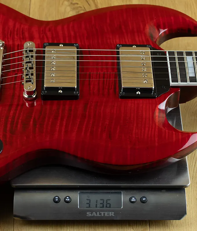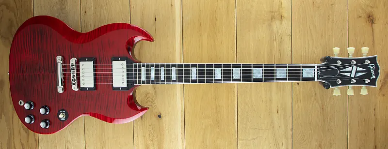 Gibson Custom Shop сделан на заказ SG Custom с великолепной тщательно подобранной верхней декой из кленового шпона с звукоснимателями Custombucker.