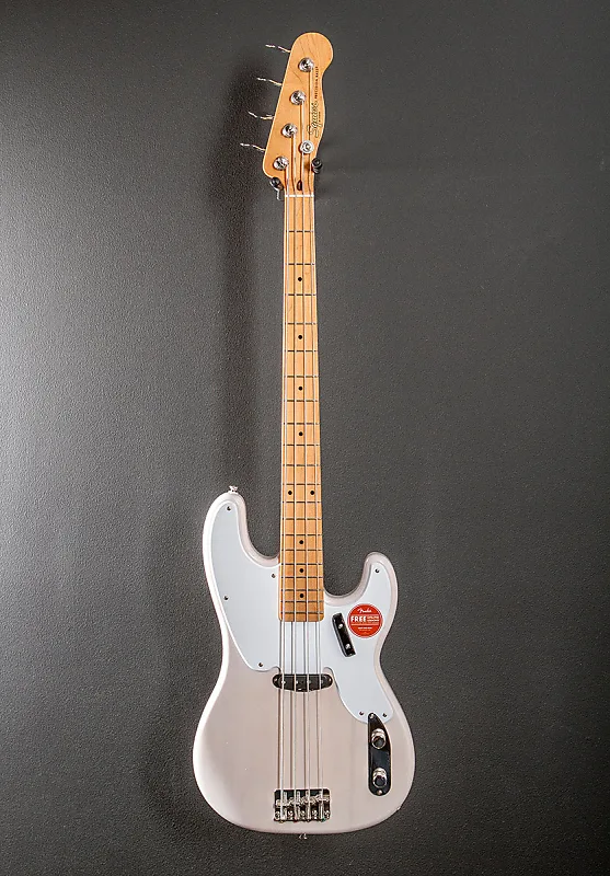 «Празднование рождения P Bass в начале 1950-х годов, Classic Vibe ‘50s Precision Bass обеспечивает массивное звучание благодаря сингл-коилу Alnico, разработанному Fender. Дружелюбные для игрока особенности включают тонкий, удобный профиль грифа в форме «C» с легкозажимной накладкой радиусом 9,5 дюйма и узкими высокими ладами, а также винтажный мост с резьбовыми седлами. Эта ретро-модель Squier также имеет головку грифа с маркировкой в стиле 1950-х, богатый никелированный хромированный фурнитур и глянцевую отделку грифа в винтажном оттенке, создающую ощущение старой школы.»