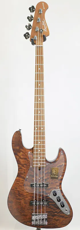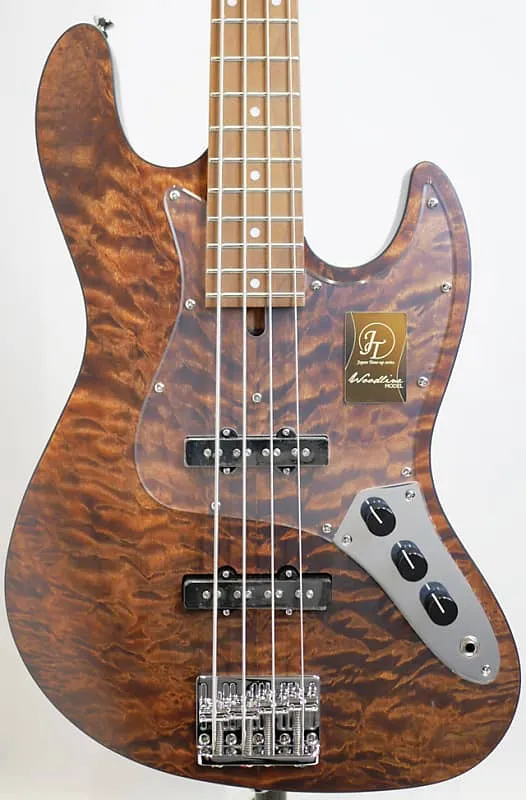 В дополнение к высококачественной отделке каждой детали, внимание к деталям частей и функций было унаследовано, а оригинальный продукт изготовлен из латуни, которая характеризуется басовым тоном, распространяющимся по средне-низкому диапазону, и более плотным по сравнению с предыдущими продуктами. Применяя накладку на гриф, эта машина также оснащена привычным «турбо-переключателем» в модели «WOODLINE». Потянув ручку тона вверх, вы можете соединить два сингл-пикапа последовательно, создавая густой звук, похожий на хамбакер. (*Когда турбо-переключатель включен, регулируйте громкость с помощью передней ручки Vol. В это время задняя ручка Vol отключена)