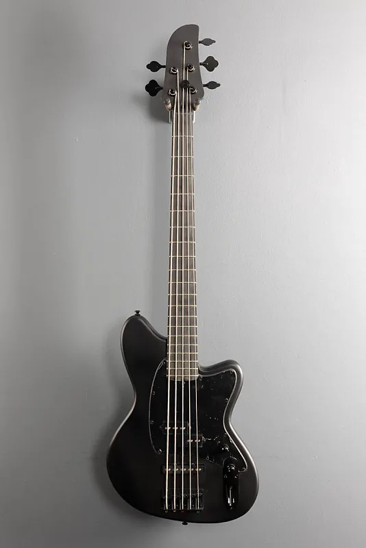 Черная плоская модель, корпус из окуме, гриф из эбенового дерева с радиусом 9,5 дюйма и средними ладовыми порожками на грифе формы TMB5 из жареного клена, длина мензуры 34 дюйма, ширина порожка 1,77 дюйма, звукосниматели Dynamix P на грифе и Dynamix J на мосту, кастомная электроника Ibanez с 2-полосным эквалайзером, мост B15W, открытые колки, вес 9,9 фунта, чехол не входит в комплект.