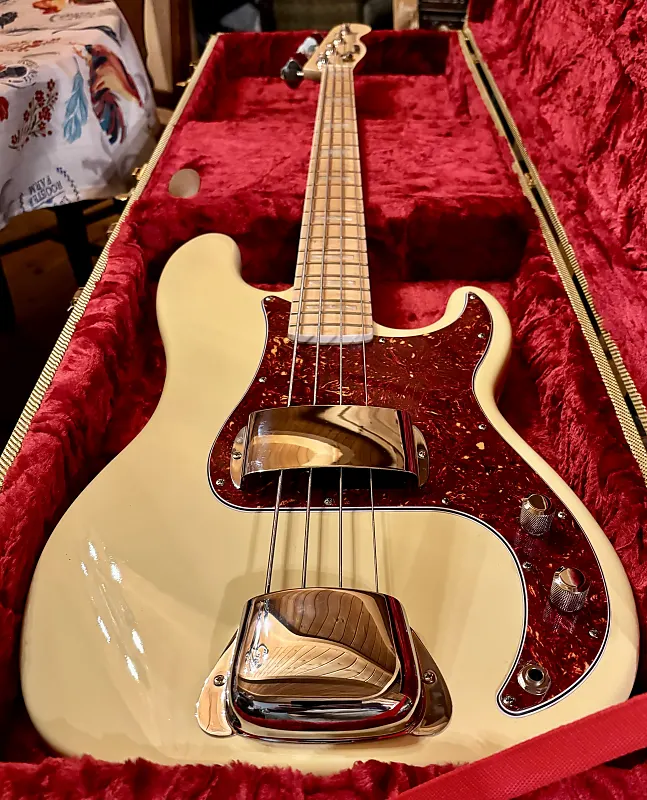 Корпус из ольхи, шея и гриф из клена с накладками из перламутра, звукосниматели Fralin с 5% перезаписью, потенциометр громкости CTS 250k, потенциометр тембра CTS 500k с конденсатором .047uf Orange Drop, вся проводка в тканевой оплетке.