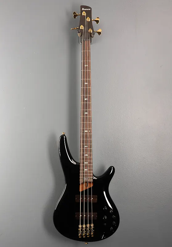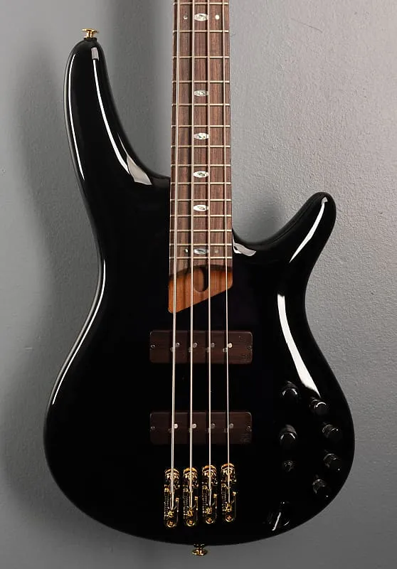 Черный, Сделано в Японии, Глянцевая отделка корпуса, Корпус из ольхи, Атласная форма грифа 4 HP из пяти частей жареного клена/ореха S-Tech, Гриф с радиусом 12" из палисандра с овальными вставками из перламутра/абалона и средними ладовыми порожками, Длина мензуры 34", Ширина верхнего порожка 1,5", Звукосниматели Nordstrand Big Single для бриджа и грифа с деревянными крышками, Преамп Ibanez Sonitech с 3-полосным эквалайзером и переключателем обхода EQ (push/pull) и 3-полосным переключателем средней частоты с системой Hexa mid, Бридж MR5S и колки Gotoh литые/запечатанные, Вес 7,9 фунтов, В жестком кофре