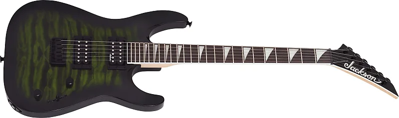 Спортивный в классическом стиле Jackson, Dinky Arch Top JS32Q DKA HT оснащен совершенно новыми отделками Transparent Black Burst, Transparent Green Burst и Transparent Purple Burst с заостренными черными грифами и полностью черной фурнитурой.