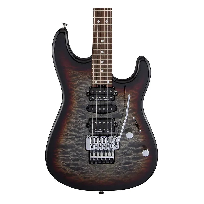 •MJ San Dimas Style 1 HSH FR PF QM включает в себя другие назначения премиум-класса, включая пятипозиционный переключатель для бесконечных вариаций тона, регулятор тембра без нагрузки и ручку громкости (с горшком Bourns с низким коэффициентом трения), тремоло Gotoh GE1996T Series с двойной блокировкой, литые тюнеры Gotoh и многое другое.