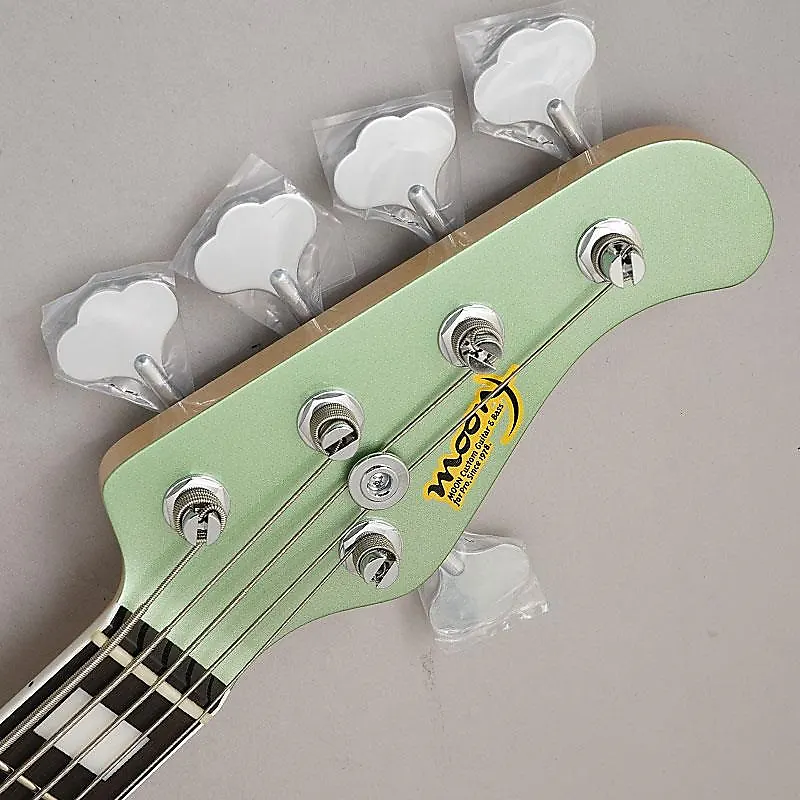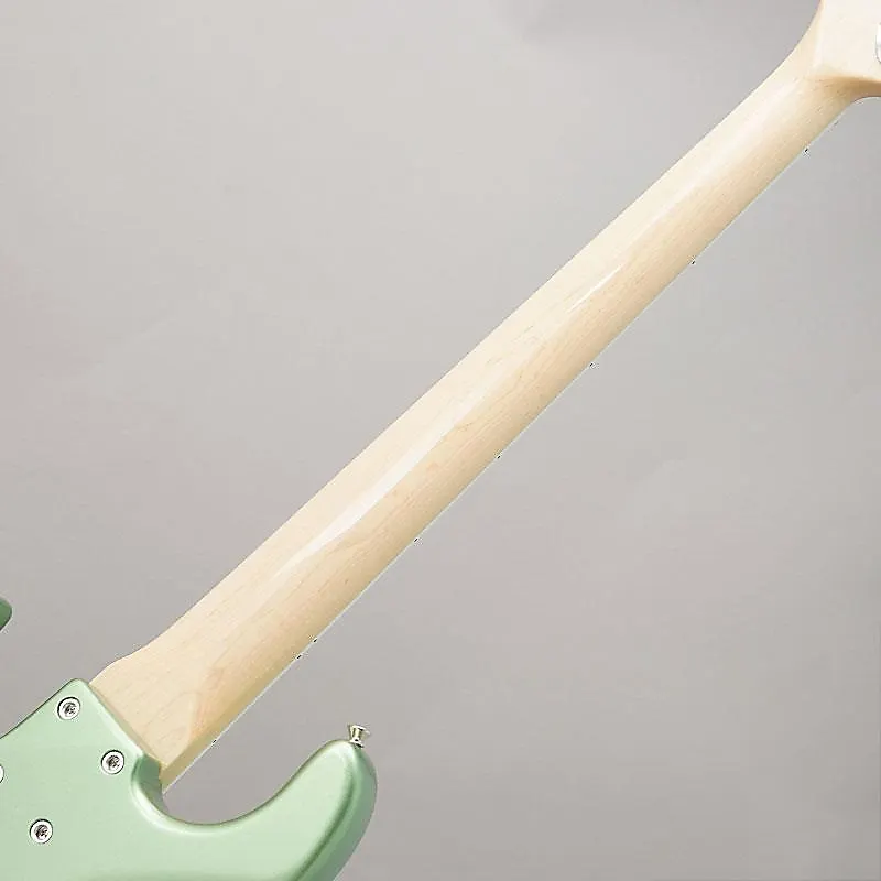 Цвет - это нестандартный цвет вне каталога под названием "Aged Ice Blue Metallic". Это уникальный, слегка зеленоватый оттенок, напоминающий выцветший на солнце ледяной голубой, и он выполнен с соответствующей головой грифа. Хотя это полиуретановое покрытие, привычная окончательная шлифовка (полировка) умышленно опущена, оставляя поверхность с грубой текстурой. Сохраняя твердость и стабильность полиуретанового покрытия, оно также обладает теплотой лакированного финиша, что делает его идеальным покрытием для модели Moon. Эти варианты были выполнены по нашему запросу и являются специальными характеристиками, которых нет в стандартных спецификациях.