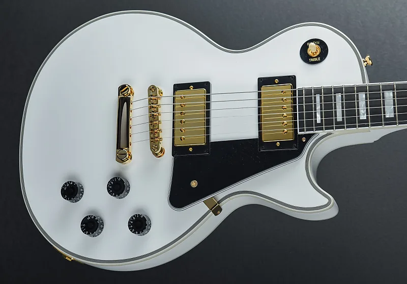 Цвет Alpine White, глянцевая отделка, кленовый кап на корпусе из цельного красного дерева, многоуровневая окантовка верхней и задней части, современная средняя шея C-образной формы из цельного красного дерева, окантованный гриф из черного дерева с радиусом 12 дюймов, вставки из перламутра и лады среднего и большого размера, длина мензуры 24,75 дюйма, ширина верхнего порожка 1,69 дюйма, звукосниматели Gibson USA 498T (бриг) и Gibson USA 490R (гриф), 3-позиционный переключатель с управлением громкостью и тембром для каждого звукоснимателя, мост и задний струнодержатель Epiphone LockTone tune-o-matic, колки Grover Rotomatic, вес 9 фунтов, с жестким чехлом