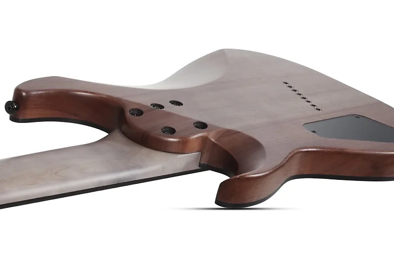 Гриф - Колки: Schecter - Материал накладки грифа: Палисандр - Материал грифа: Клен - Инкрустация: Перлойдовые линии - Длина мензуры: 25,5" (648 мм) - 27,5" (698,5 мм) Мульти-мензура - Форма грифа: Тонкая "C" - Толщина: у 1-го лада - 20 мм / у 12-го лада - 22 мм - Количество ладов: 24 Jumbo - Радиус накладки грифа: 508 мм - Седло: Graph Tech XL Black Tusq - Ширина седла: 56 мм - Натяжение стержня: Двунаправленный регулируемый стержень с гайкой 5/32" (4 мм)