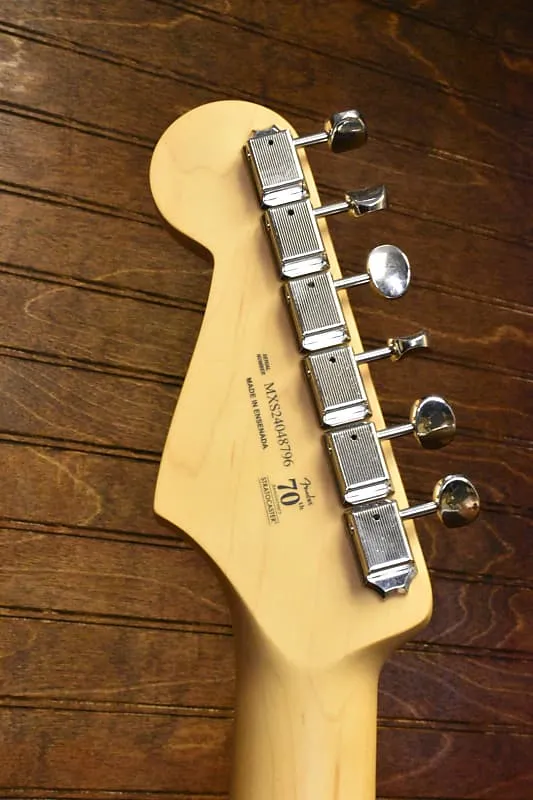 Головка грифа-Stratocaster Материал грифа-Клен Покрытие грифа-Сатиновый уретан на тыльной стороне грифа с глянцевым уретаном на лицевой части головки грифа Форма грифа-Современный "C" Конструкция: 4-болтовая стандартная декаРадиус грифа: 9,5" (241 мм)Материал грифа: цельный розовое деревоМаркировка ладов: белые точкиБоковые точки: белыеКоличество ладов: 22Грифовой анкер: однократное действие, регулировка у головкиГайка анкерного стержня: шестигранник 3/16"Грифовая кость/узел: синтетическая костьШирина у гайки: 1,650" (42 мм)