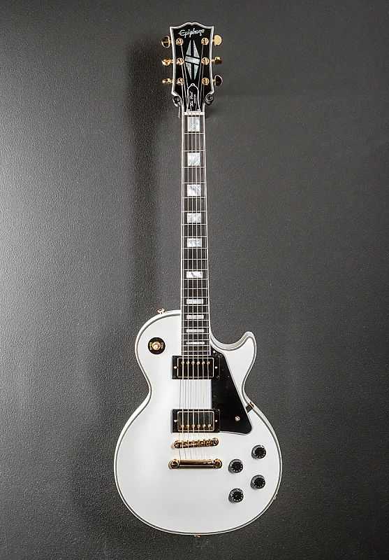 «В рамках продолжающегося сотрудничества с Gibson Custom, Epiphone с гордостью представляет флагманскую модель Les Paul Custom в линейке Inspired by Gibson Custom. Эта прекрасная гитара, полный комплект элегантных «смокинговых» деталей, известных для этой модели, оснащена цельножаланым грифом из махагона с профилем 50-х Rounded C, накладкой на гриф из эбена и шашечными вставками из перламутра. На головке грифа в стиле Gibson с «открытой книгой» также имеются вставки из перламутра в виде разделенного ромба и логотипа Epiphone. Золотая фурнитура, включая колки Grover Rotomatic с передаточным числом 18:1, придает гитаре еще больше визуальной привлекательности. Корпус из цельного махагона с кленовой крышкой добавляет немного яркости звучания, а звукосниматели Gibson USA 490R и 498T обеспечивают тональную изысканность и достаточную мощь, чтобы подчеркнуть всю красоту инструмента. Они подключены вручную к потенциометрам CTS, разъему Switchcraft и переключателю звукоснимателей, а также к конденсаторам Mallory. Линейка Inspired by Gibson Custom с двойным ромбом» Логотип находится на задней части головки грифа, а также прилагается черный жесткий футляр с логотипом Inspired by Gibson Custom и внутренней отделкой золотистой охры.