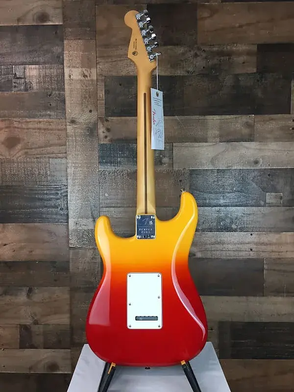 Электрогитара с цельным корпусом с корпусом из ольхи, кленовым грифом и грифом, 3 однокатушечными звукоснимателями и синхронизированным тремоло, текила Sunrise Finish