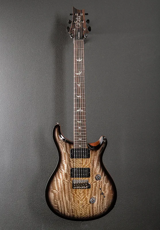 Natural Smokeburst, высокоглянцевое нитроотделка, верх из клена в стиле скрипки, корпус из махагони, тонкая вырезанная шея из махагони с узором, гриф из цирикота с радиусом 10″ и инкрустацией птиц из перламутра с каймой из пауа, планка головки из цирикота, длина мензуры 25″, ширина Nut 1 11/16”, звукосниматели PRS DMO для бриджа и шеи, 5-позиционный переключатель с главной регулировкой громкости и тембра, запатентованный тремоло PRS Gen III, колки с блокировкой PRS Phase III с лопастями, вес 7.0 фунтов, в жестком футляре