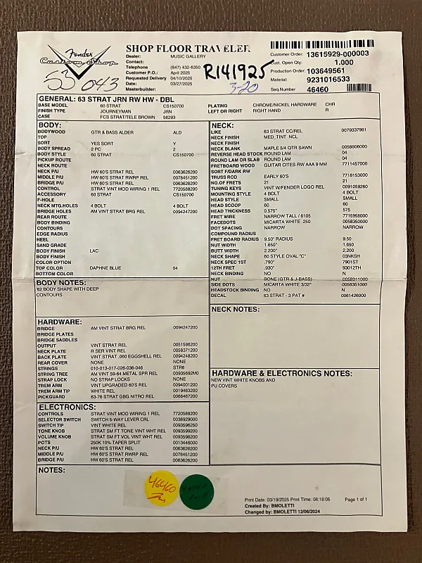 Эта великолепная гитара весит идеальные 7 фунтов 14 унций, благодаря тщательной работе команды Custom Shop.
