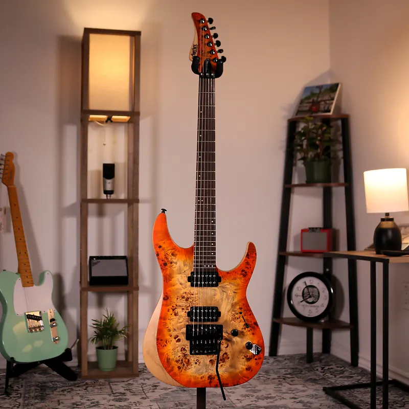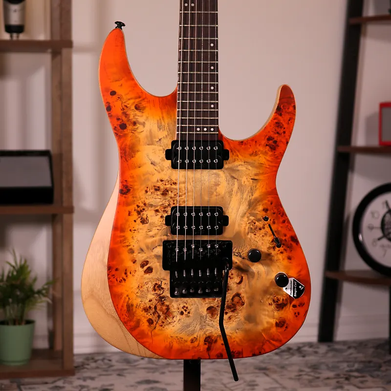 Играете ли вы в рок, металл или фьюжн, Schecter Reaper-6 - это сила, с которой нужно считаться. Этот пылающе-красный инструмент оснащен корпусом из болиголового топа на болотной ясени, обеспечивая максимальный естественный тон и впечатляющий внешний вид. Выхлопные хамбакеры Diamond Decimator делают Reaper-6 звуковым эквивалентом огнемета, но при этом дают достаточно возможностей для охвата всех тональных нюансов. Что касается комфорта, после того как вы испытаете изящные контуры корпуса этой гитары, выемку Ultra-access Neck Carve и быструю игру на грифе из эбенового дерева, будет трудно ее отложить. Reaper-6 FR оснащена системой тремоло с двойной блокировкой Floyd Rose серии 1500 для самых требовательных соло-гитаристов, которым действительно необходимо делать «dive bomb» с прищепкой. Привлекающая внимание черная и хромированная фурнитура завершает комплект.