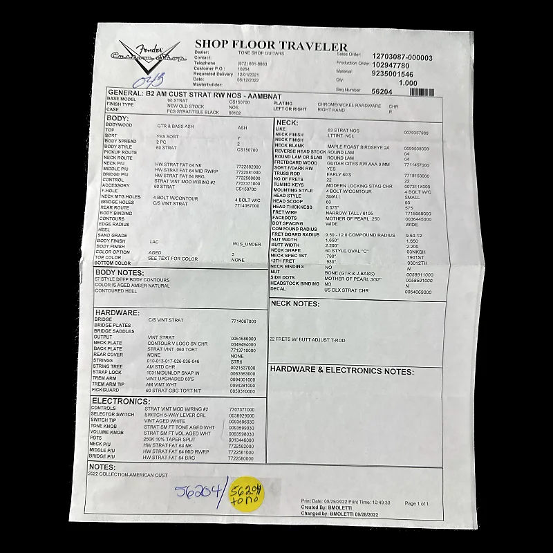 Внутри, трио кастомных Магазинные вручную намотанные звукосниматели Fat '60s Strat обеспечивают винтажную четкость и силу звучания сингл-койлов, в то время как современная схема проводки Strat Mod #2 и Tone Saver Bleed гарантируют, что гитара будет звучать полно и динамично на любой громкости. Пятирежимный переключатель, ручки управления в стиле aged white и зеленый пикгард цвета мятного сохраняют классический, но универсальный вид.